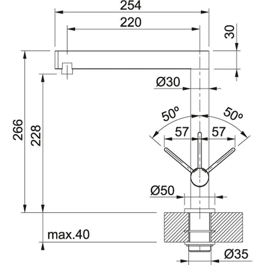 Zasięg wylewki 220.00 mm