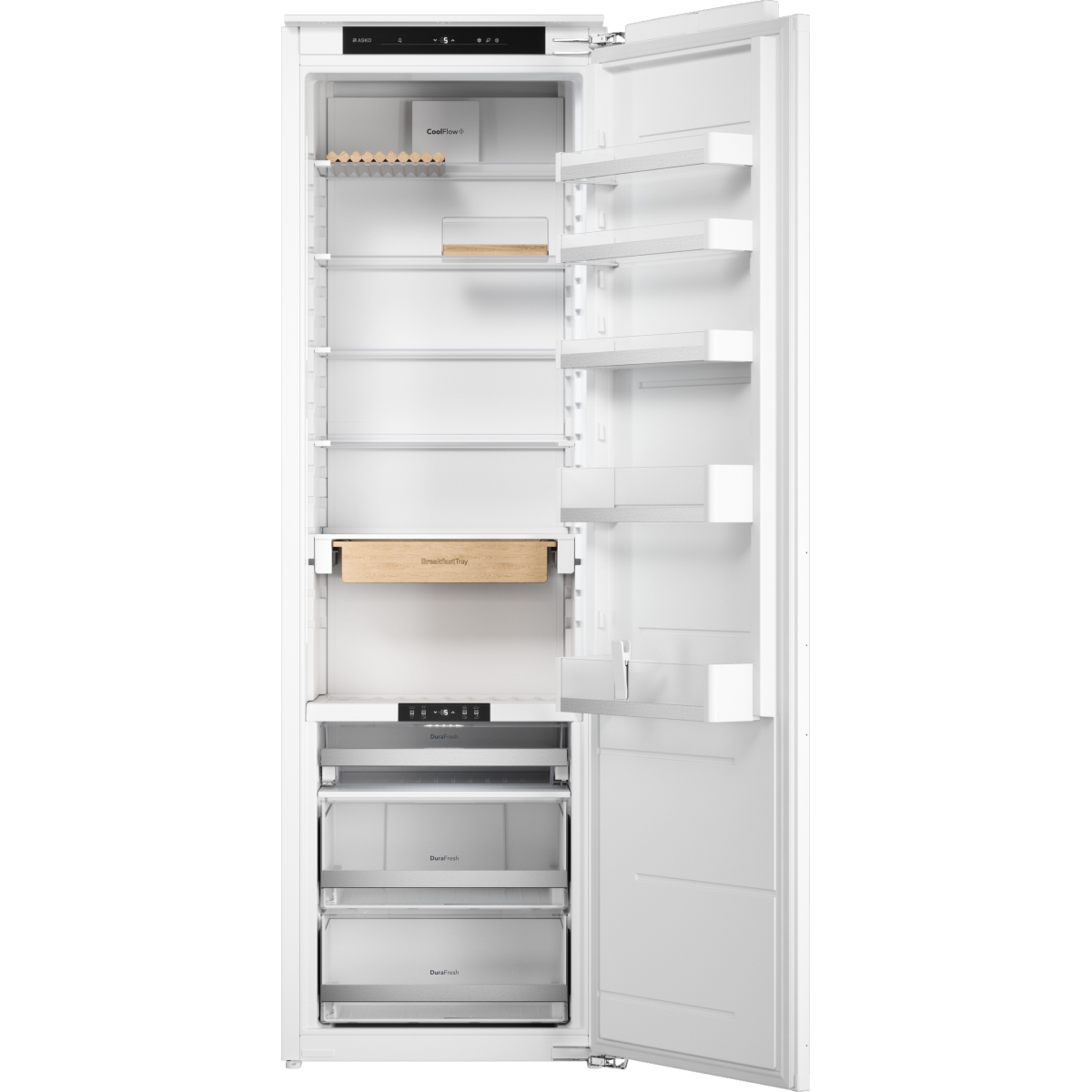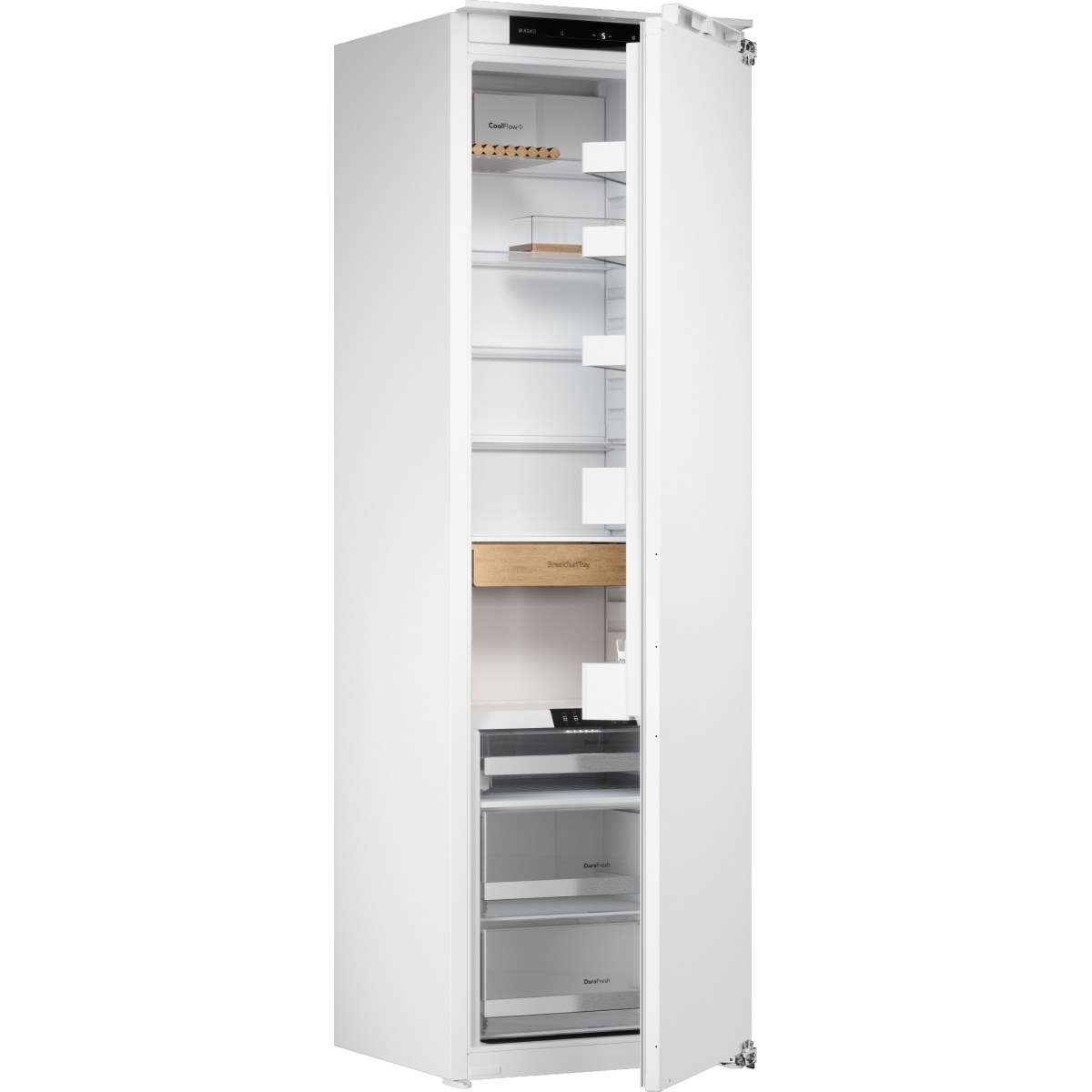 | Wykorzystanie i elastyczność | Pojemność całkowita: 300 L Pojemność chłodziarki: 224 L Objętość komory chłodniczej: 76 L Ilość magazynów sera i masła: 1 pojemnik MultiBox z drewnianą pokrywą Pojemnik na przekąski: Duża drewniana taca Półki w drzwiach lodówki: 3 półki na drzwiach Drewniany uchwyt na butelkę: na 3 butelki Boczny pasek LED, Taśma LED pod ścianką działową Szuflada na warzywa z regulacją wilgotności |