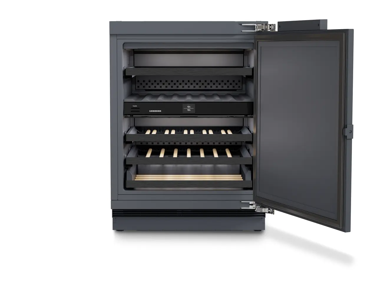 Wnętrze o pojemności całkowitej 92 l oferuje przestrzeń na 32 butelki o poj. 0,75 l typu Bordeaux, rozmieszczone na drewnianych półkach. Korzystanie z zasobów jest płynne i bezpieczne dla wina dzięki zastosowaniu szyn teleskopowych z pełnym wysuwem, które pracują bez wstrząsów. Zaawansowany panel obsługa Touch & Swipe umożliwia błyskawiczną zmianę ustawień w dwóch strefach, a zintegrowany system SmartDeviceBox pozwala na kontrolę parametrów chłodzenia z poziomu smartfona. Nad jakością powietrza czuwa filtr z węglem FreshAir, który neutralizuje zapachy mogące przenikać przez korki.