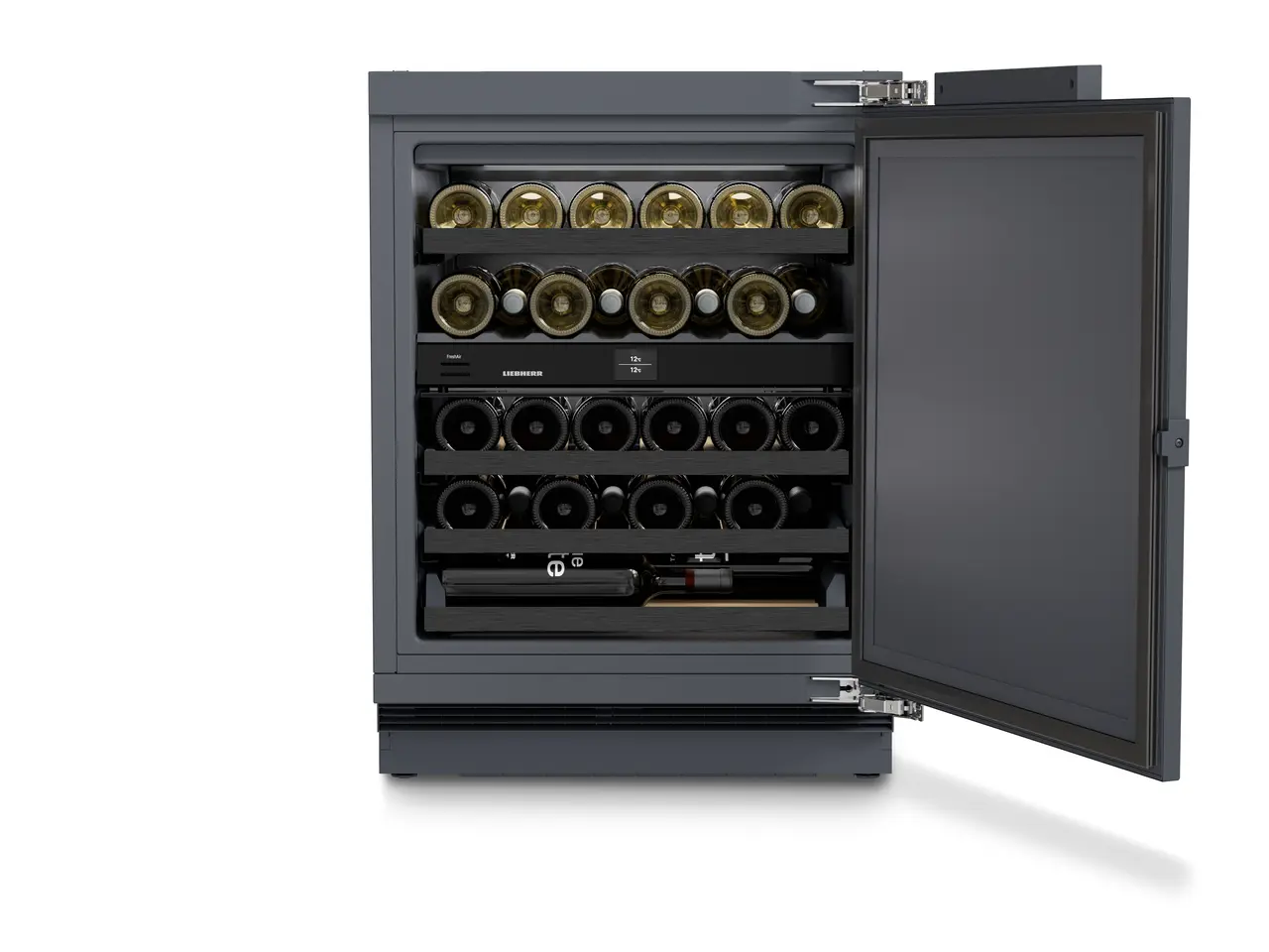 Chłodziarka do wina Liebherr UWpri 3672 Vinidor Selection to zaawansowane urządzenie przeznaczone do zabudowy podblatowej, które dzięki wymiarom zewnętrznym 81,9 / 59,7 / 56,4 cm oraz możliwości montażu frontu meblowego, tworzy spójną linię z kuchenną zabudową. Konstrukcja dopasowana do wnęki o wysokości 82 – 88 cm pozwala na precyzyjne zlicowanie urządzenia z meblami, zachowując estetykę nowoczesnych wnętrz.