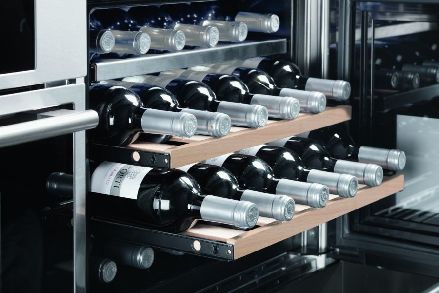 – Pojemność przechowywania: 18 butelek wina 0,75 l (76 mm)+ 4 butelki szampana (90 mm)