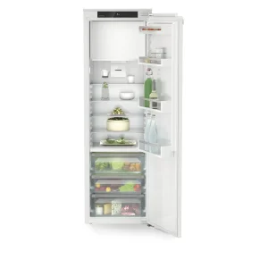 Chłodziarka do zabudowy Liebherr IRBc 5121 plus BioFresh dyskretnie integruje się z kuchenną zabudową, a dzięki montażowi na drzwi stałe i elastyczności, jaką dają wymiary niszy 177,2 - 178,8 / 56 - 57 / 55,0 cm, tworzy spójną linię z frontami meblowymi. Codzienne użytkowanie ułatwia amortyzowany mechanizm SoftSystem, który sprawia, że drzwi zamykają się płynnie i cicho, nawet przy pełnym obciążeniu produktami. Wnętrze rozświetla oświetlenie boczne LED z obu stron, zapewniając doskonały wgląd w zapasy rozmieszczone na 5 półkach w chłodziarce, z których aż cztery oferują komfortową regulację wysokości.