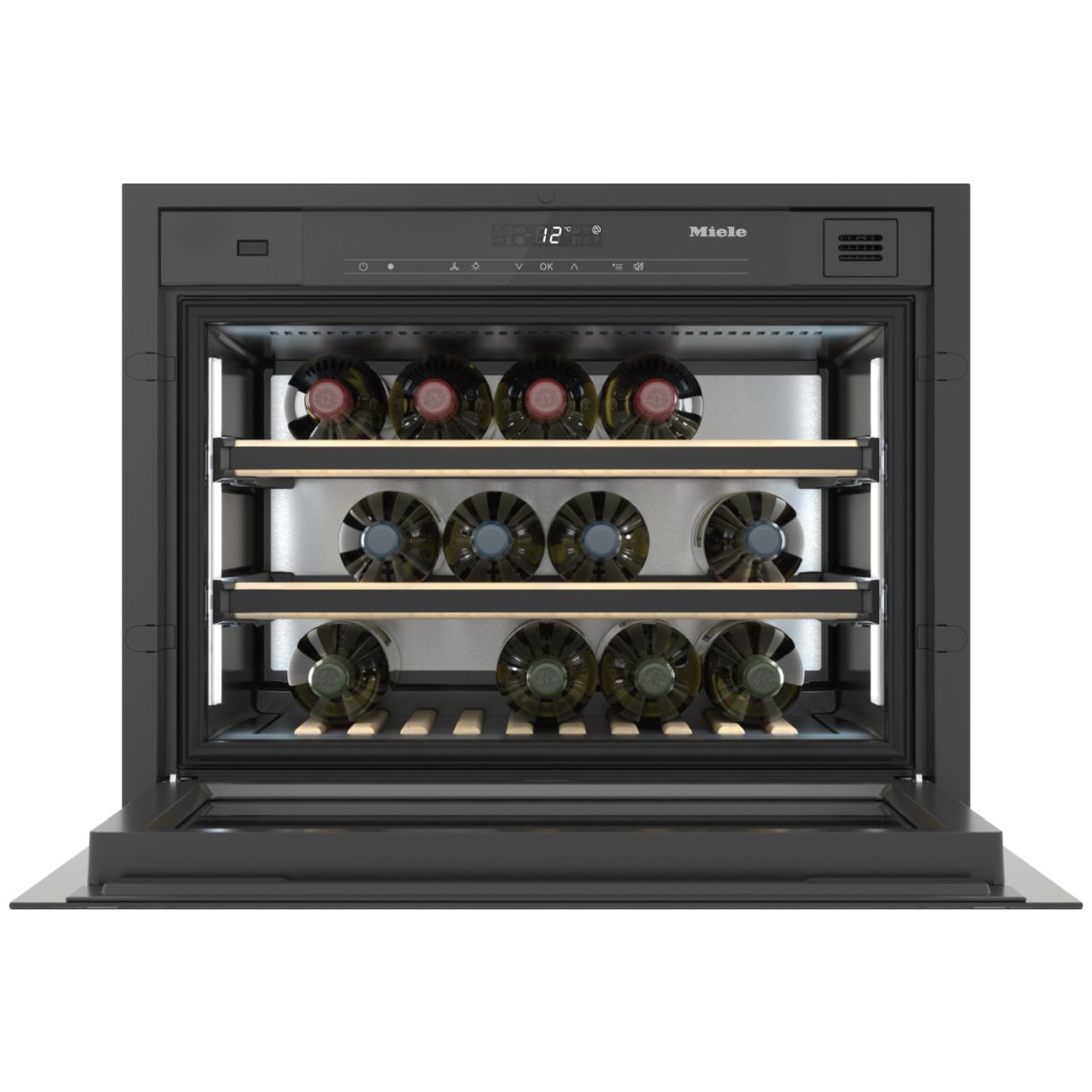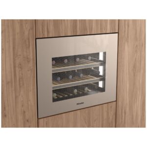 Miele@home integruje urządzenie z siecią domową. Obsługa TouchControl umożliwia precyzyjne ustawienie jednej strefy temperaturowej w zakresie od 5°C do 20°C. Akustyczny alarm drzwi optyczny alarm drzwi akustyczny alarm temperaturowy i optyczny alarm temperaturowy sygnalizują nieprawidłowości. Funkcja blokady zabezpiecza ustawienia.