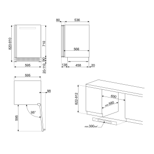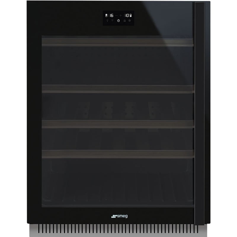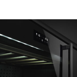 Winiarka, wysokość: 82 cm, sterowanie dotykowe, pojemność: 38 butelek, Wi-Fi, otwieranie push-pull, 2 półki stałe + 3 demontowalne, elektroniczne sterowanie temperaturą (5°-20°C), oświetlenie LED, drzwi ze szkłem z powłoką anty-UV, klasa efektywności energetycznej G, pojemność netto: 114 l, zawias z lewej strony (brak możliwości zmiany kierunku otwierania drzwi)