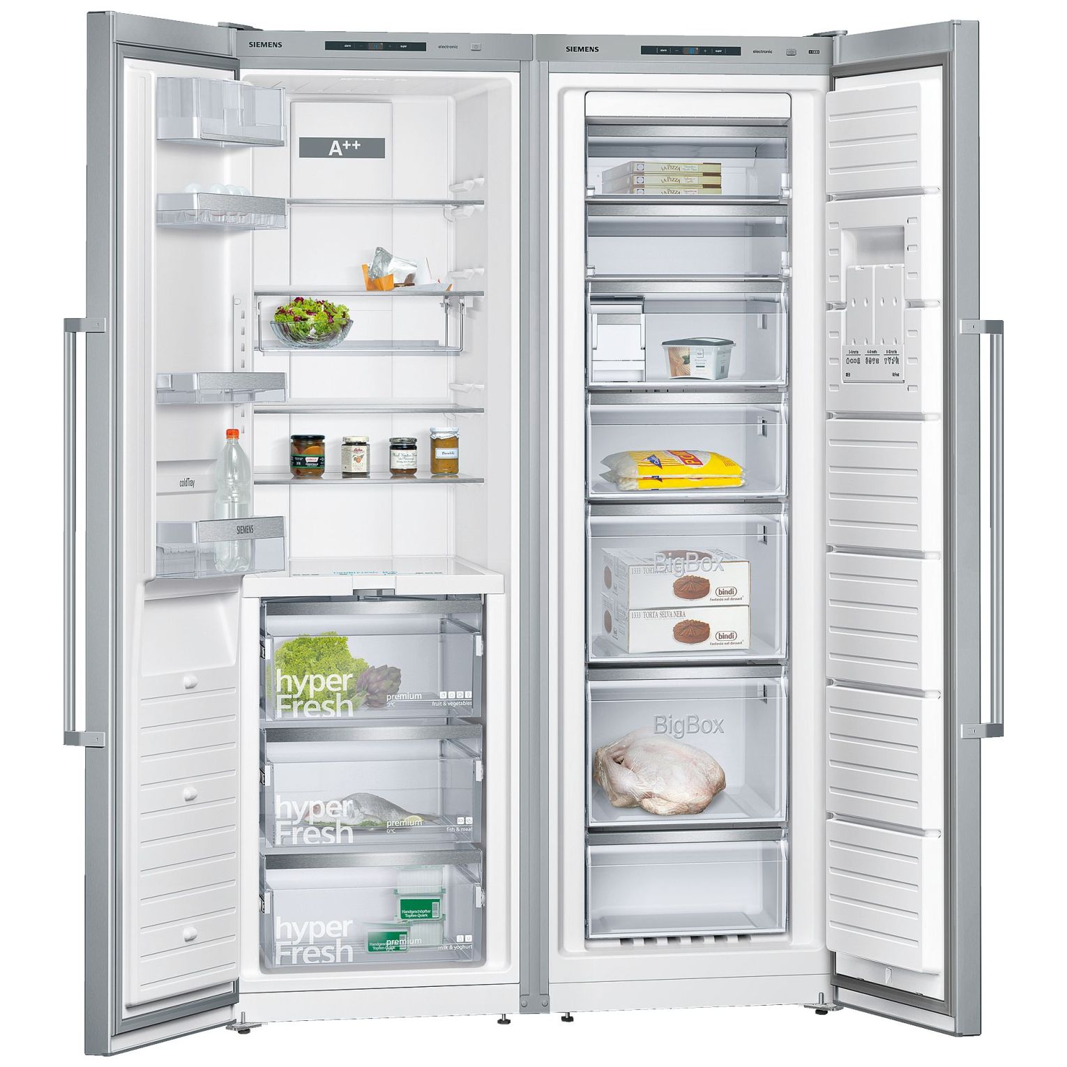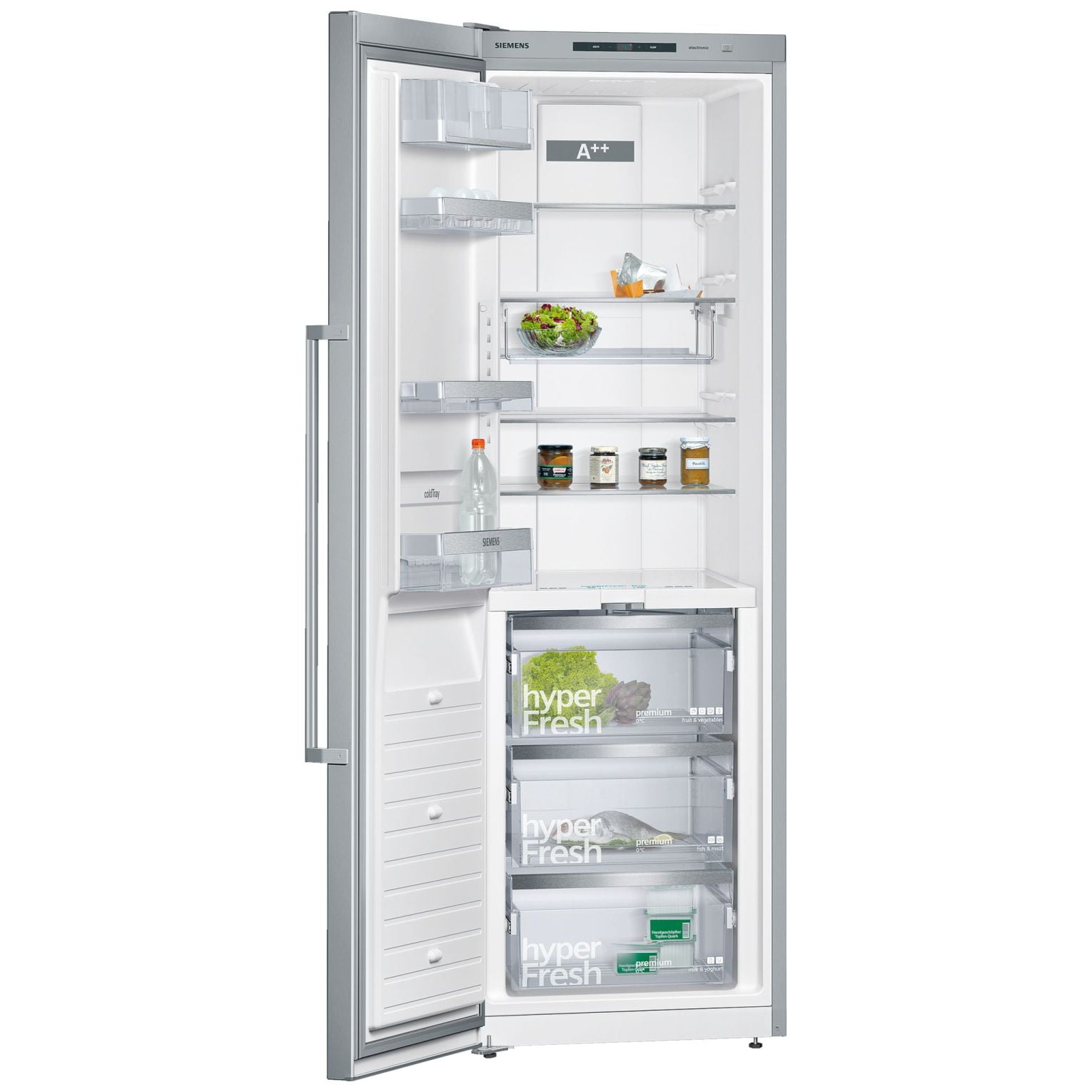 Chłodziarka iQ700 wolnostojąca pozwala na zachowanie świeżości produktów dzięki komorom hyperFresh 0°C. Dodatkową półkę flexShelf można w zależności od potrzeb w prostu sposób opuścić. Panel sterowania touchControl pozwala sterować wszystkimi funkcjami precyzyjnie i łatwo delikatnym dotykiem. Urządzenie chłodnicze w klasie energetycznej A++ chłodzi bardzo wydajnie. Chłodziarka posiada także półkę na drzwiach na zimne napoje coldTray i powłokę antiFingerprint na drzwiach. Urządzenia z kątem otwarcia drzwi 90° można dostawić do każdej ściany lub wstawić do dowolnej wnęki.