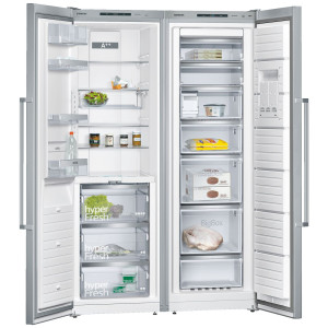 Funkcje i udogodnienia: noFrost, elektroniczna regulacja temperatury, wyświetlacz cyfrowy touchControl, 5 szklanych półek, dynamiczne chłodzenie, strefa świeżości vitaFresh premium 0°C, oświetlenie LED, półka na drzwiach na zimne napoje coldTray, automatyczne odszranianie, superchłodzenie, kolor: drzwi stal szlachetna, powłoka antiFingerprint na drzwiach. Możliwość kombinacji z zamrażarką GS36NAI31.