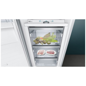 Chłodziarka wolnostojąca serii iQ700 gwarantuje dłuższą świeżość produktów dzięki systemowi freshSense. Wysuwane szklane półki easyAccess ułatwiają wkładanie produktów. Przycisk superchłodzenie przyspiesza schłodzenie nowych produktów żywnościowych. Lampy LED równomiernie oświetlają wnętrze chłodziarki, znacznie ułatwiając sprawdzanie stanu zapasów. Szklane półki safetyGlass są wytrzymałe i łatwe w czyszczeniu. Lodówka posiada także wyświetlacz cyfrowy touchControl i systemem świeżości hyperFresh.