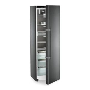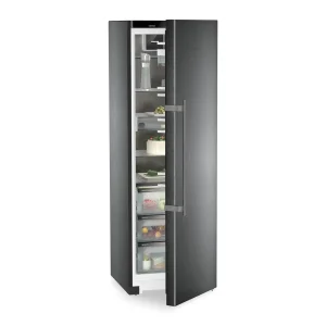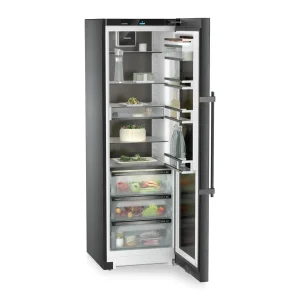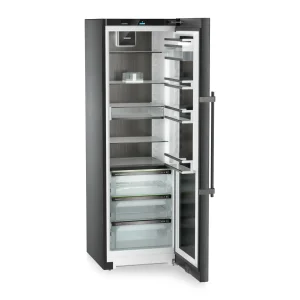 Chłodziarka wolnostojąca Liebherr SRBbsc 529i Peak o głębokim wykończeniu BlackSteel została zaprojektowana z myślą o pełnej integracji z nowoczesną zabudową kuchenną dzięki systemowi InteriorFit. Urządzenie o wymiarach 185,5 / 59,7 / 67,5 cm pozwala na zlicowanie z frontami meblowymi, zachowując przy tym estetykę wolnostojącej formy. Wysoka sprawność podzespołów przekłada się na klasę efektywności energetycznej C, co zapewnia optymalne zużycie energii na poziomie 108 kWh/a. Model ten charakteryzuje się wyjątkowo dyskretną pracą – poziom hałasu 34 dB oraz klasa emisji hałasu B sprawiają, że urządzenie jest niemal niesłyszalne w otwartej przestrzeni mieszkalnej.