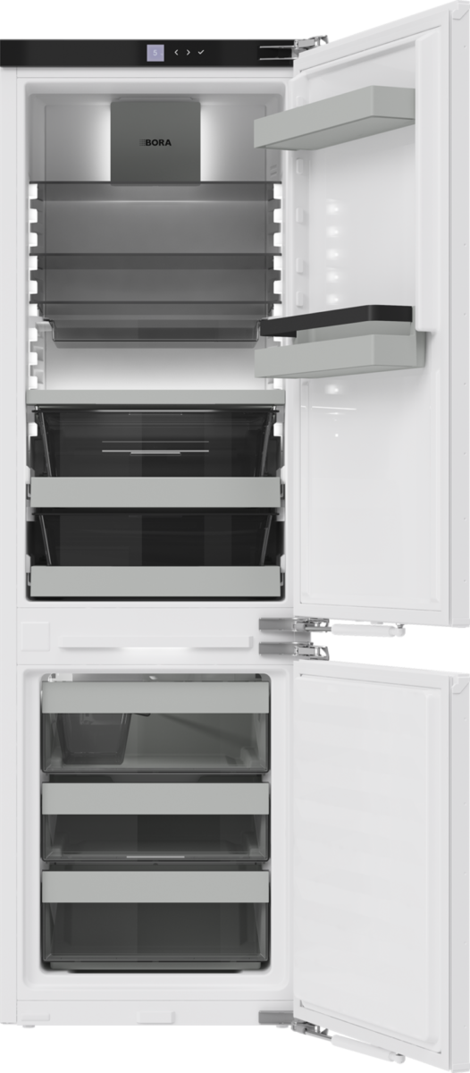 Chłodziarko-zamrażarka BORA Fresh zero to zaawansowane rozwiązanie, które zapewnia długotrwałą świeżość żywności poprzez utrzymanie obszaru bliskiego 0°C. Wyposażone w pokrywę regulującą wilgotność oraz kostkarkę do lodu z możliwością podłączenia do sieci wodociągowej. Dodatkowo oferuje bezszronową technologię oraz świeże powietrze dzięki filtrowi zapachów i dwóm oddzielnym obiegom chłodzenia. Produkt cechuje wysoka jakość wykonania, wykorzystanie najlepszych materiałów i doskonałe doświetlenie. Jest łatwy w użytkowaniu dzięki ergonomicznej konstrukcji oraz dotykowemu interfejsowi HMI. Zapewnia szeroki zakres funkcji oraz prostą możliwość czyszczenia. Dodatkowo oferuje zintegrowaną łączność poprzez BORA Connect.