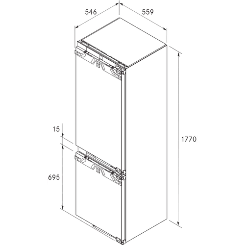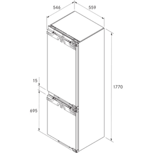 - Maks. waga frontu drzwi komory chłodniczej/komory zamrażarki: 18 / 12 kg