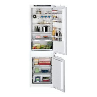 Chłodziarko-zamrażarka do zabudowy serii iQ300 z systemem hyperFresh, dłużej utrzymuje świeżość żywności, a dzięki technologii noFrost w zamrażalniku, nie będzie gromadził się lód. Żywność jest chłodzona szybciej i dłużej zachowuje swoje walory dzięki systemowi autoAirflow. Funkcja Supermrożenie obniża na krótką chwilę temperaturę do –30°C. Butelki wymagają odpowiedniego sposobu przechowywania, i to zapewnia im dedykowany stelaż. Lodówka wyposażona została w elektroniczną regulację temperatury oraz wyświetlacz LED.