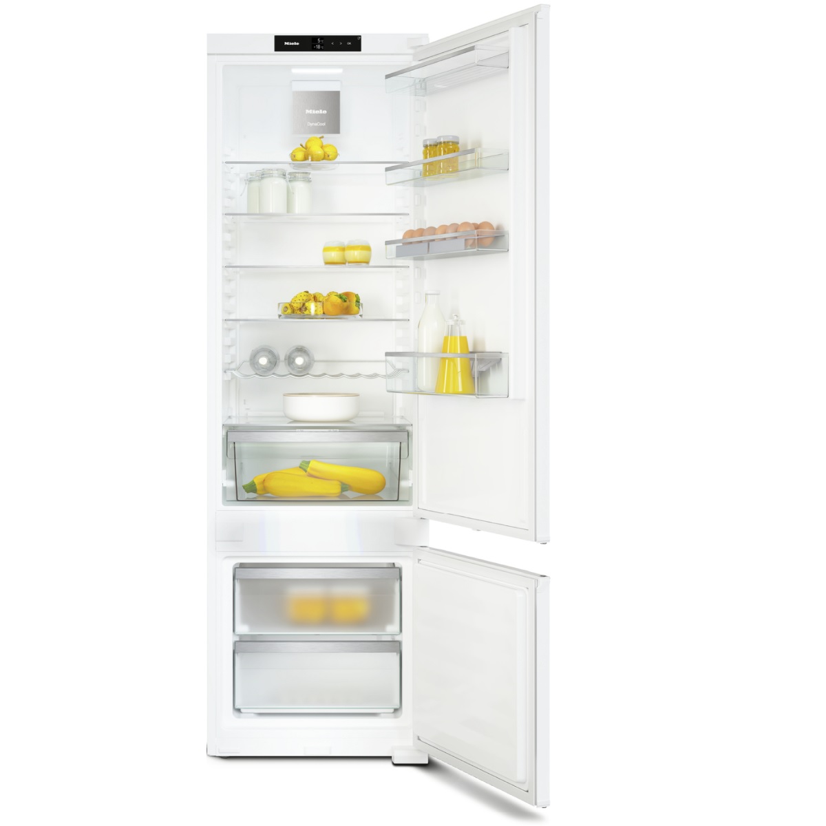 Chłodziarko-zamrażarka do zabudowy z DynaCool i DuplexCool dla wygodnego przechowywania artykułów spożywczych.