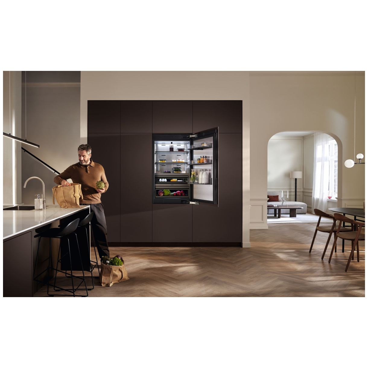 Chłodziarko-zamrażarka MasterCool KFMC 3834 R (SKU 12866450) marki Miele to urządzenie do zabudowy zintegrowane zaprojektowane dla harmonijnej integracji z przestrzenią kuchenną. Z wymiarami szerokości urządzenia 756 mm wysokości urządzenia 2123 mm oraz głębokości urządzenia 608 mm idealnie komponuje się z frontami meblowymi przystosowanymi do maks. ciężaru frontu drzwi części chłodniczej 60 kg i maks. ciężaru frontu drzwi części zamrażalniczej 17 kg.