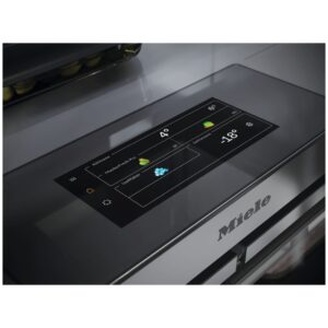 Panel M Touch Pro pozwala precyzyjnie ustawić temperaturę chłodzenia i zamrażania. Kamery w lodówce przesyłają podgląd zapasów do aplikacji Miele co umożliwia zdalne sprawdzenie zawartości. Integracja z Miele@home pozwala na zdalne sterowanie. Urządzenie oferuje 3 strefy temperaturowe oraz tryby szabasowy wakacyjny i Eco dla optymalizacji pracy.