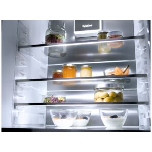 Miele@home łączy urządzenie z siecią rozszerzając zdalne sterowanie. Sterowanie FreshTouch jest intuicyjne a niezależna regulacja temperatury komory chłodzenia i komory mrożenia umożliwia precyzyjne ustawienia.