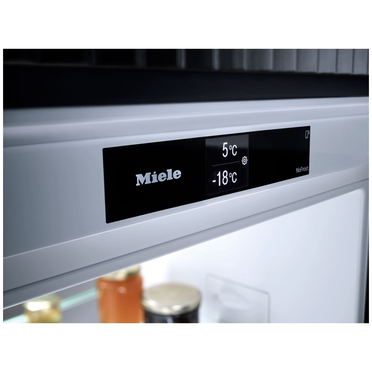 Chłodziarko-zamrażarka do zabudowy, wysokość niszy do zabudowy 178 cm KFN 7795 C łączy się z systemem inteligentnego domu przez Miele@home. Koncepcja obsługi FreshTouch umożliwia precyzyjne sterowanie w tym niezależną regulację temperatury komór. Funkcje SuperCool i SuperFrost szybko obniżają temperaturę chłodziarki lub mrożą produkty.