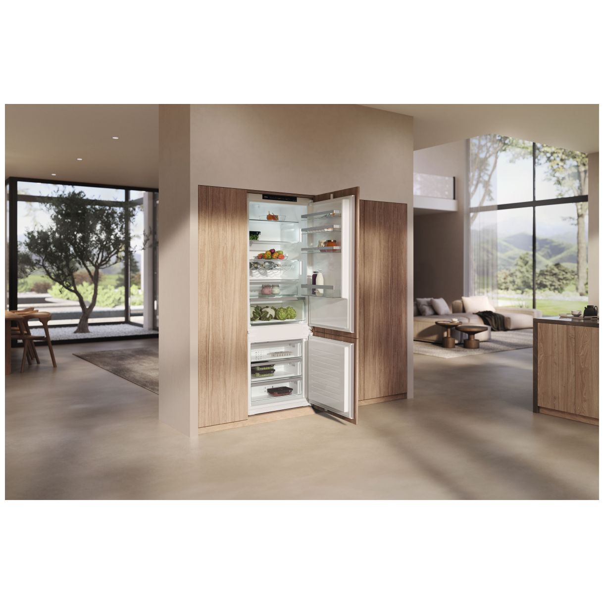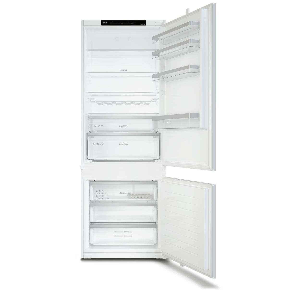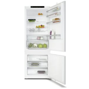 To chłodziarko-zamrażarka do zabudowy zintegrowana o pojemności XXL oferująca całkowitą pojemność użytkową 383 l (chłodziarka 285 l zamrażarka 98 l). Oświetlenie komory chłodzenia LED rozświetla wnętrze. System DailyFresh utrzymuje świeżość produktów. NoFrost zapobiega gromadzeniu się lodu w zamrażarce. DuplexCool oddziela obiegi chłodzenia zapobiegając mieszaniu zapachów. VarioRoom umożliwia elastyczną aranżację. Możliwość zmiany kierunku otwierania drzwi dla zawiasów drzwi po prawej stronie.