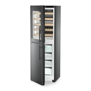 Wnętrze o pojemności całkowitej 303 l zostało zaprojektowane z myślą o profesjonalnej organizacji. Komora do przechowywania wina o pojemności 171 l mieści 44 butelki o pojemności 0,75 l, które spoczywają na drewnianych półkach o regulowanej wysokości. Dolna sekcja to zamrażarka o pojemności 133 l wyposażona w 4 schowki, w tym 3 szuflady na szynach teleskopowych z systemem VarioSpace. Utrzymanie urządzenia w czystości ułatwia automatyczna metoda rozmrażania oraz wyposażenie przystosowane do mycia w zmywarce do naczyń, co znacząco podnosi standard codziennej obsługi.