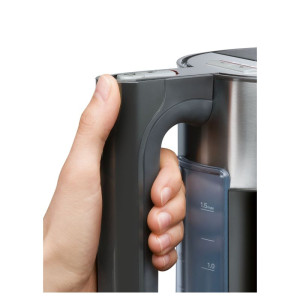 Czajnik elektryczny Sensor for senses, pojemność 1,5l, 2400 W, elegancka i solidna obudowa, TemperatureControl – możliwość ustawienia następujących temperatur: 70°C, 80°C, 90°C, 100°C, Keep Warm Function – tryb utrzymywania stałej temperatury wody w czajniku, podstawa obrotowa 360° z centralnym podłączeniem urządzenia, płyta grzejna ze stali szlachetnej wbudowana w dno czajnika, kolor: czarny/antracyt/stal szlachetna.