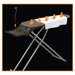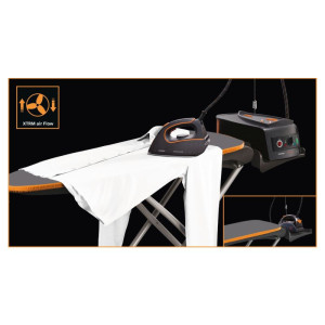 Deska do prasowania extreme active board – z systemem aktywnego odsysania pary gwarantującym dokładne przenikanie tkanin – efekt prasowania z dwóch stron, funkcja nadmuchu – unosi delikatnie