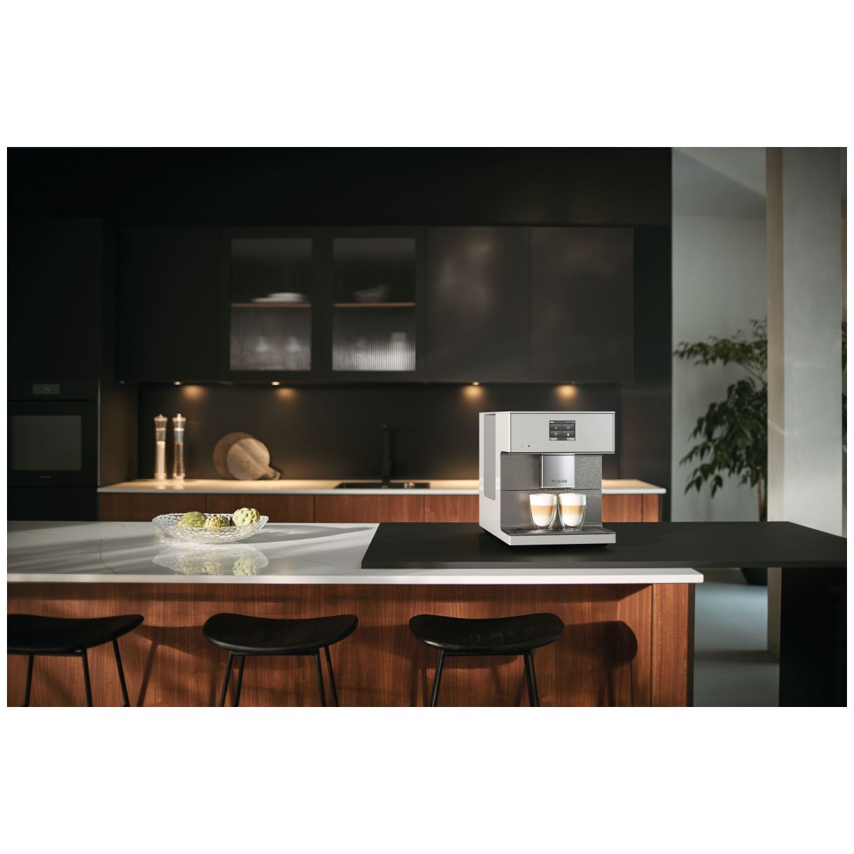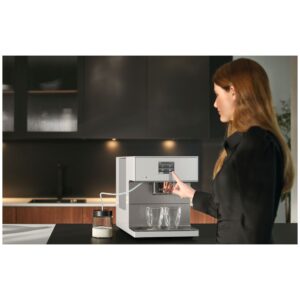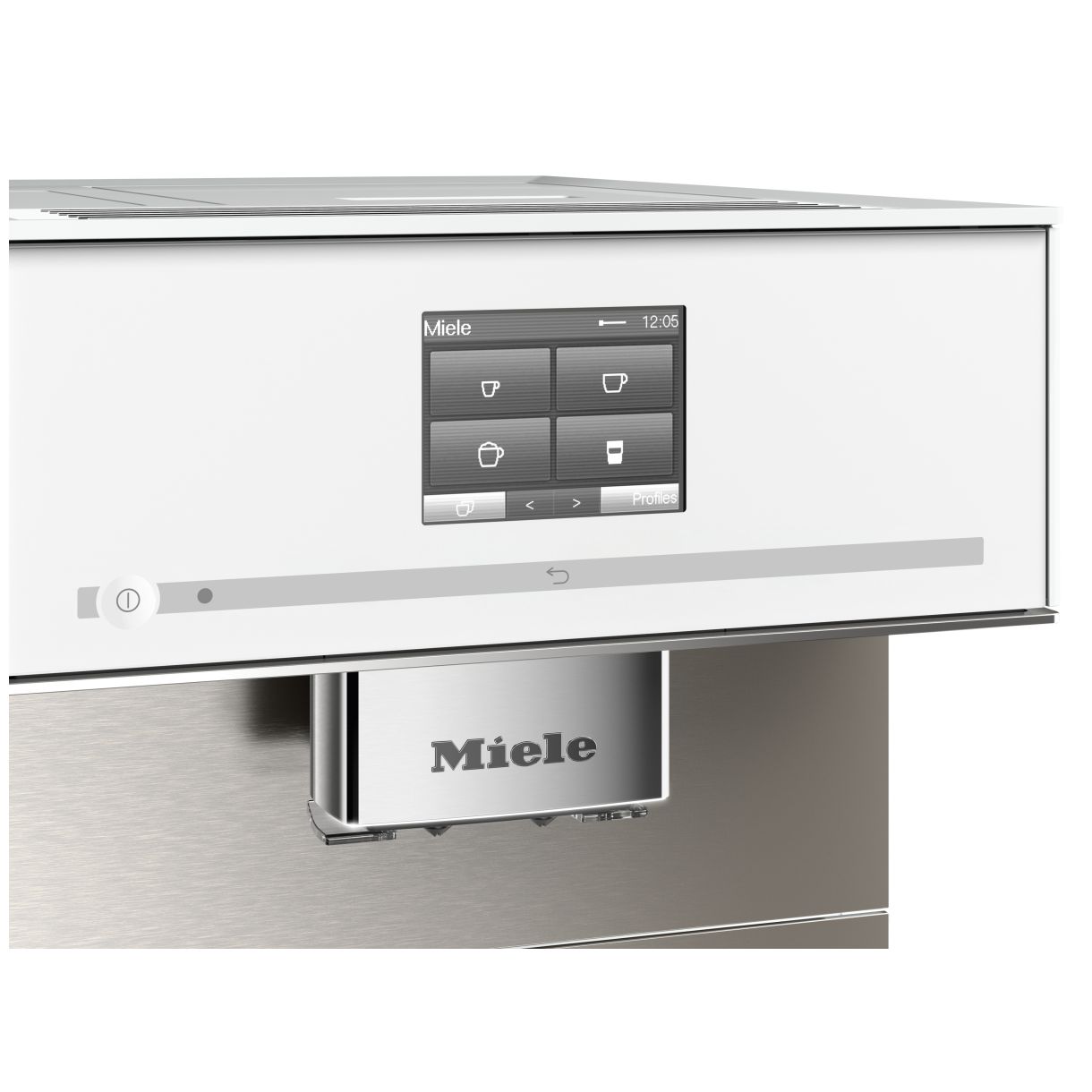 Wyświetlacz C Touch umożliwia obsługę przez dotyk. CupSensor rozpoznaje wysokość filiżanki i zatrzymuje dyszę kawy w zakresie od min. 8 cm do maks. 16 cm zapobiegając chlapaniu. Połączenie sieciowe z Miele@home pozwala na zdalne zarządzanie urządzeniem. Ekspres umożliwia stworzenie 10 programowalnych profili użytkowników.