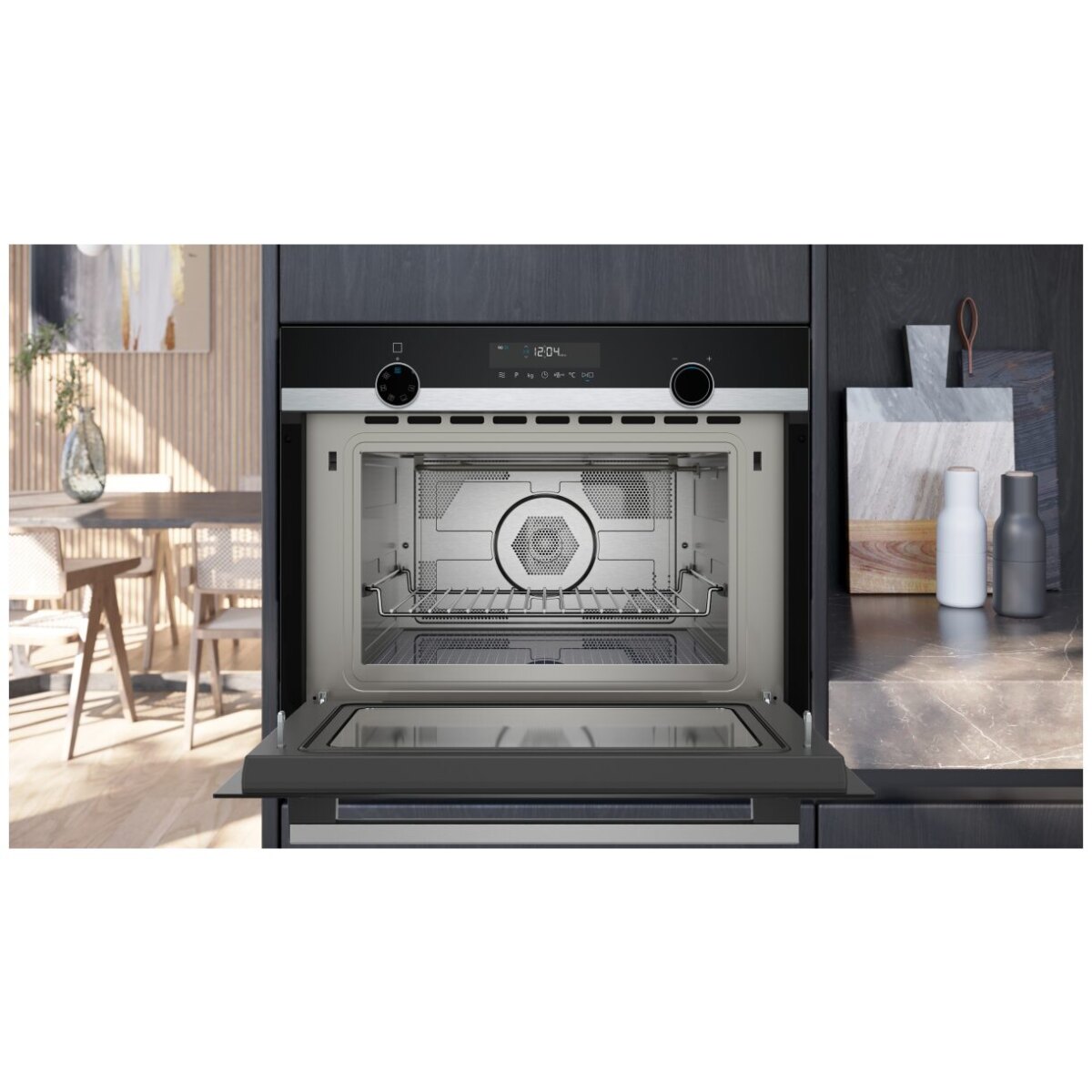 Szybkie nagrzewanie fastPreheat, automatyczne programy cookControl15 oraz równomierny termoobieg przyspieszają pieczenie i podgrzewanie. Intuicyjne lightControl (podświetlane pokrętło), czytelny wyświetlacz LCD i oświetlenie LED ułatwiają obsługę, a humidClean (czyszczenie parowe) pomaga w szybkim usuwaniu zabrudzeń.
