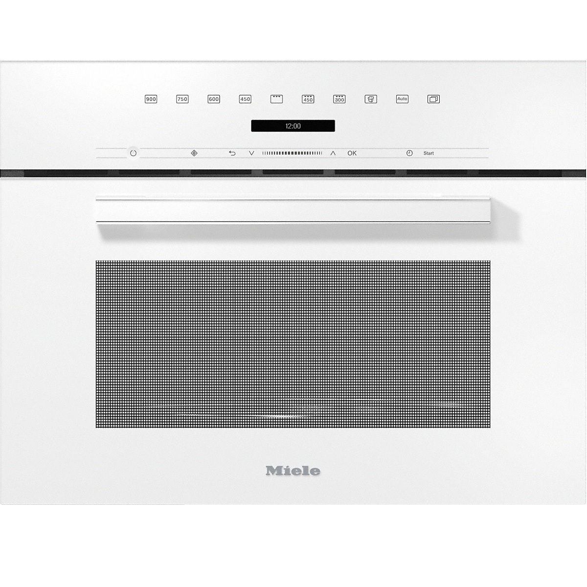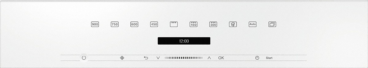 Kuchnia mikrofalowa do zabudowy w nowoczesnym designie, z panelem sterowania umieszczonym na górze.