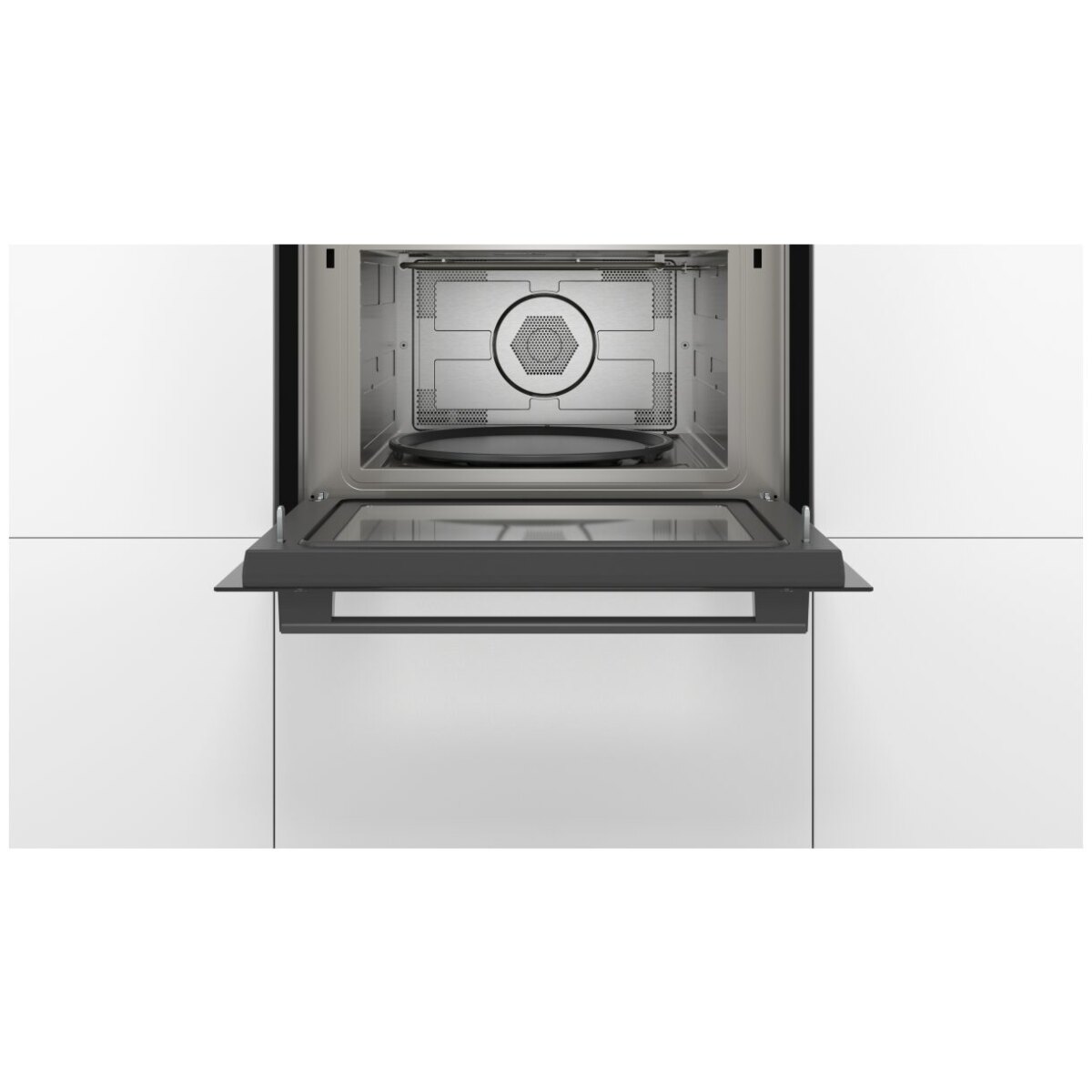 | Wnętrze | Stal szlachetna, oświetlenie LED, talerz obrotowy Ø 36 cm, zawias drzwi u dołu, uchwyt prosty |