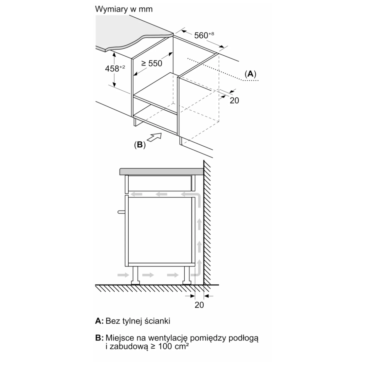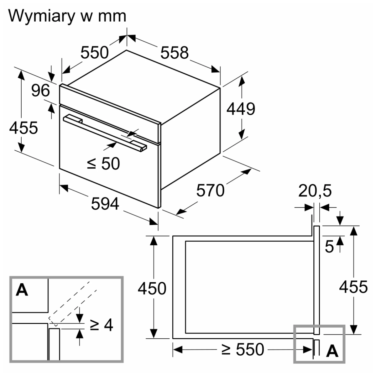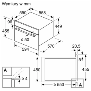| Wymiary niszy montażowej (WxSxG) | 450–452 × 560–568 × 550 mm |