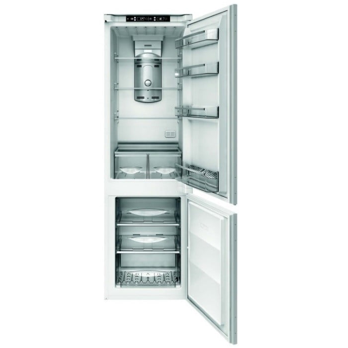 Dwudrzwiowa chłodziarko-zamrażarka do zabudowy, mocowanie panelu meblowego na ślizgaczach. Dostępny jest model FBCD 344 TNF ED z mocowaniem panela meblowego bezpośrednio do drzwi (specjalne, wzmocnione zawiasy drzwi).