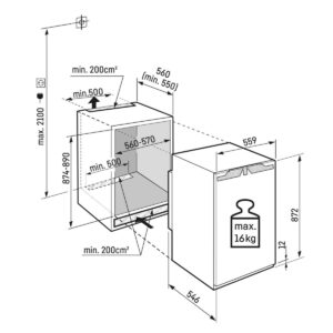 Wymiary wnęki wysokość/szerokość/głębokość 87,4 – 89 / 56 – 57 / 55,0 cm
