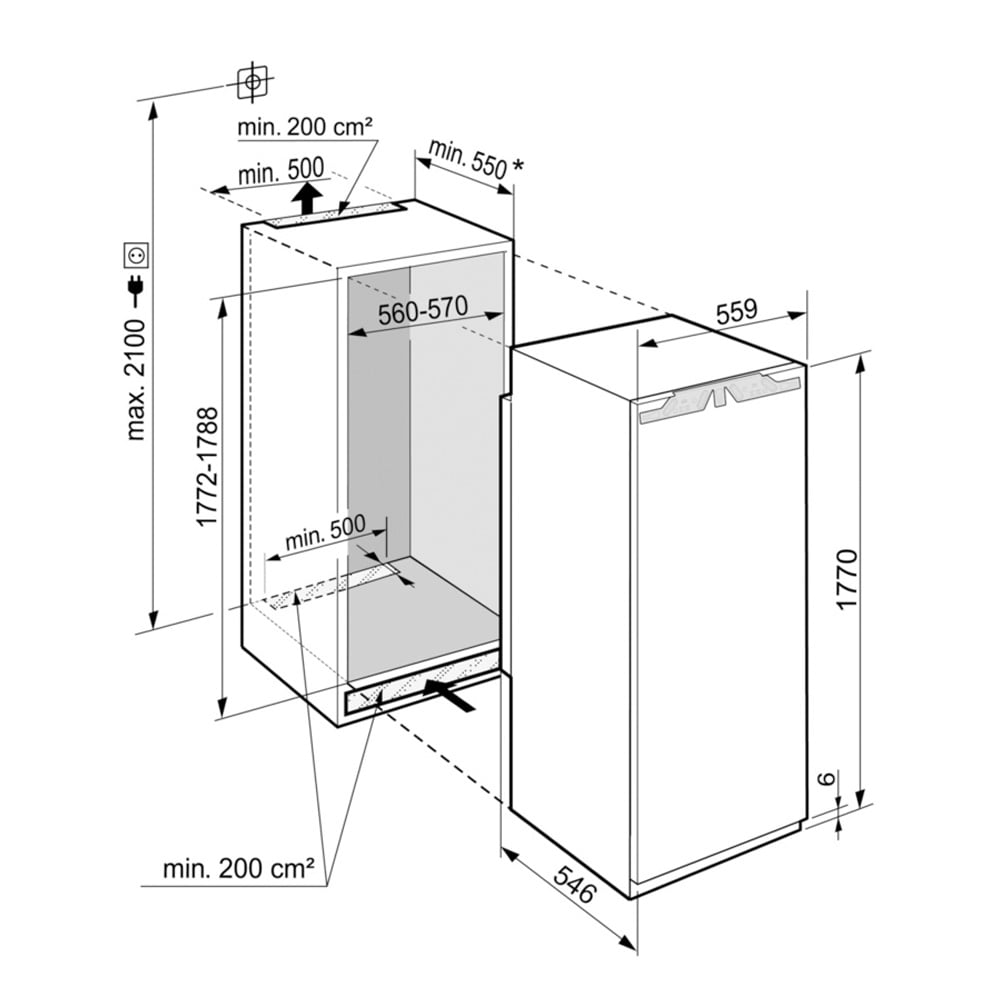 Wymiary wnęki wysokość/szerokość/głębokość 177,2 – 178,8 / 56 – 57 / 55,0 cm