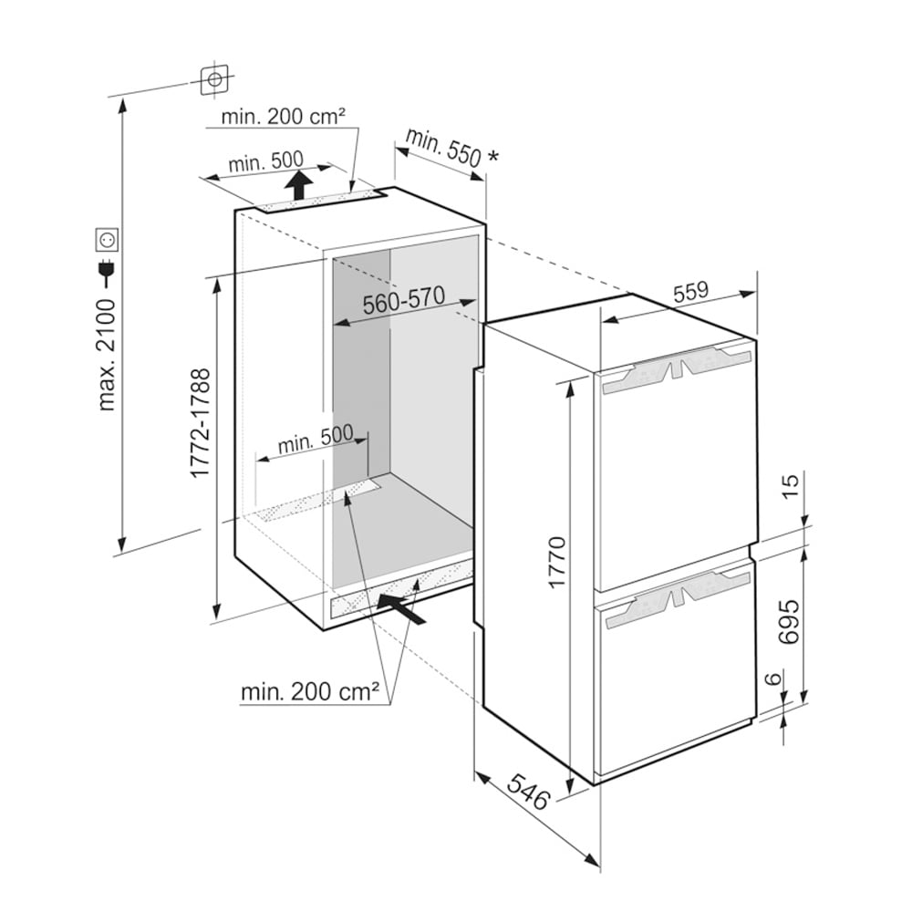 Wymiary wnęki wysokość/szerokość/głębokość 177,2 – 178,8 / 56 – 57 / 55,0 cm