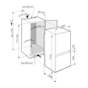 Wymiary wnęki wysokość/szerokość/głębokość 177,2 – 178,8 / 56 – 57 / 55,0 cm