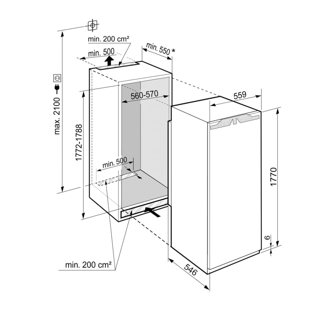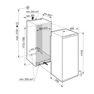 Wymiary wnęki wysokość/szerokość/głębokość 177,2 – 178,8 / 56 – 57 / 55,0 cm
