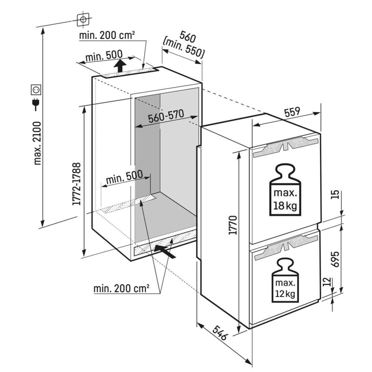 Wymiary wnęki wysokość/szerokość/głębokość 177,2 – 178,8 / 56 – 57 / 55,0 cm