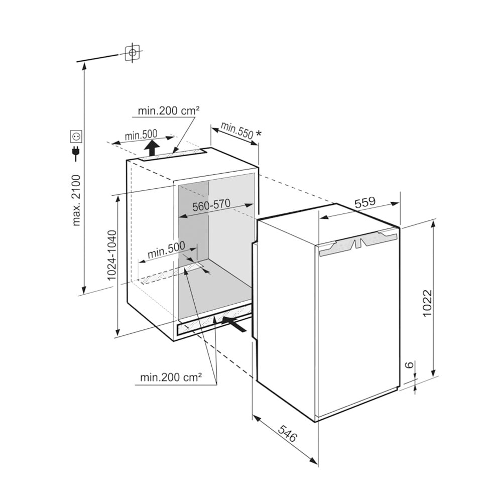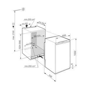 Wymiary wnęki wysokość/szerokość/głębokość 102,4 – 104 / 56 – 57 / 55,0 cm