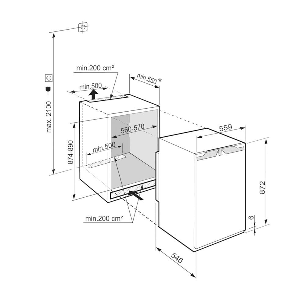 Wymiary wnęki wysokość/szerokość/głębokość 87,4 – 89 / 56 – 57 / 55,0 cm