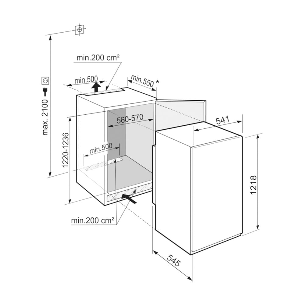 Wymiary wnęki wysokość/szerokość/głębokość 121,6 – 123,1 / 56 – 57 / 55,0 cm