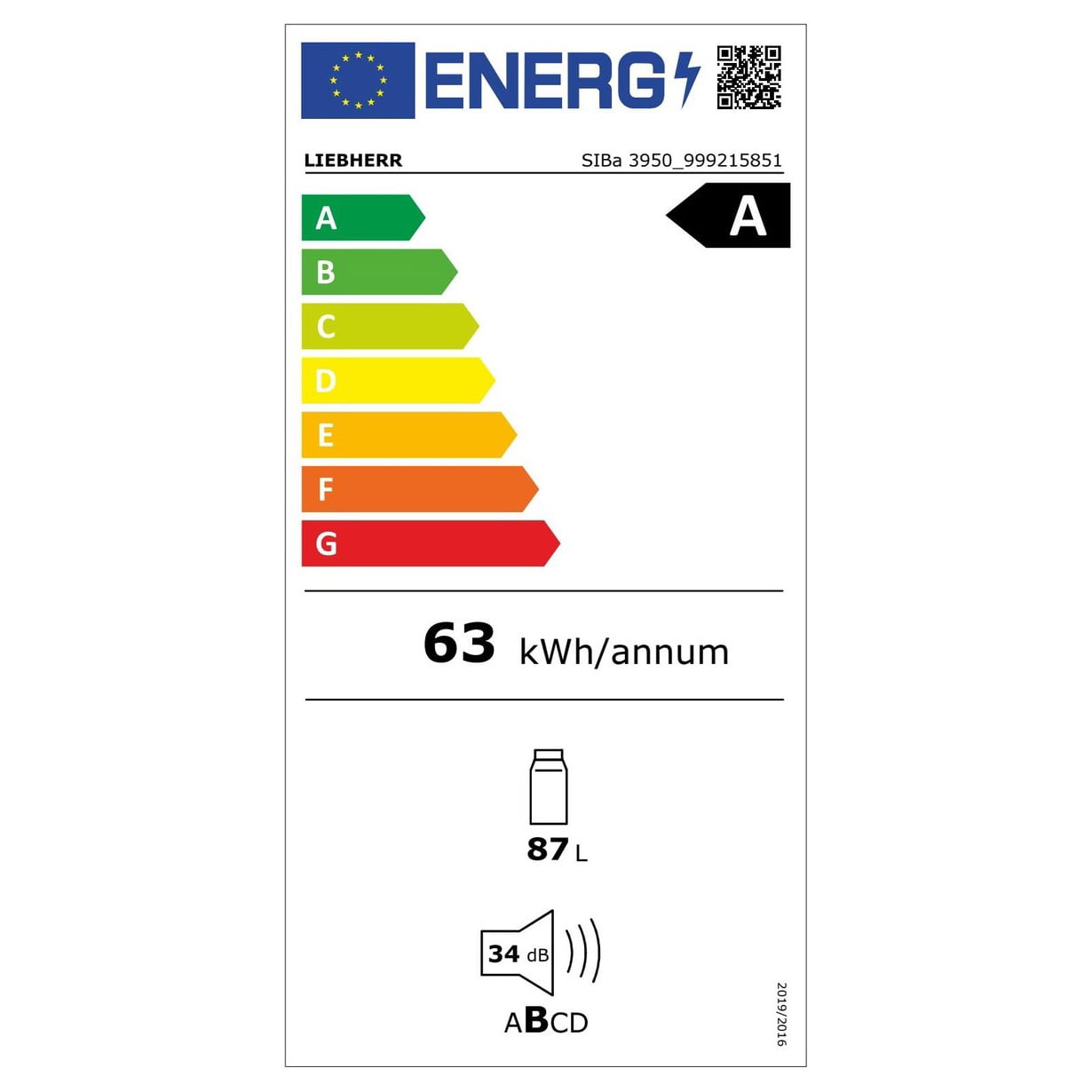 Zużycie energii w ciągu roku 63 kWh/a