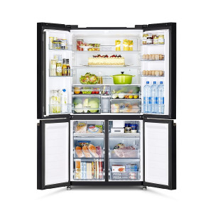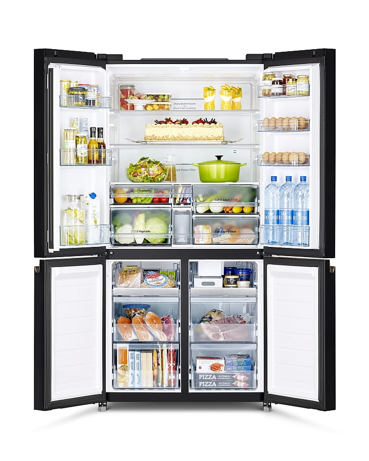 Lodówka HITACHI French Door została zaprojektowana z myślą o domu przyszłości. Dwie technologie: sprężarki inwerterowej, odpowiedzialnej za moc chłodzenia oraz Dual Fan Cooling – systemu kontrolującego, ile i do której komory jest dostarczane zimne powietrze, zapewniają doskonała wydajność i wyjątkową oszczędność energii. Lodówki nie trzeba okresowo rozmrażać dzięki funkcji Full No Frost zapewniającej równomierny obiegu zimnego powietrza w każdej komorze. Tryb Quick Cooling zapewnia o około 29% szybsze chłodzenie. Filtr powietrza o potrójnej mocy usuwa substancje zapachowe oraz 99% bakterii. Idealnym miejscem do przechowywania produktów paczkowanych lub warzyw jest szuflada z regulowaną wilgotnością.