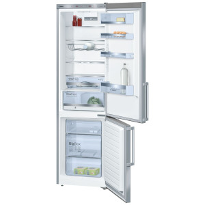 Pojemność 337l (249+88), W201xS60xG65cm, zamrażarka ****, klasa efektywności energ. A+++, 156 kWh/rok, elektroniczna regulacja temperatury TouchControl, wyświetlacz cyfrowy, 5 szklane półki, chromowany stelaż na butelki, szuflada VitaFresh z regulacją wilgotności, komora VitaFresh <>0°, zamykana górna półka na drzwiach, automatyczne odszranianie w chłodziarce, superchłodzenie, oświetlenie LED, 3 szuflady w zamrażarce w tym BigBox, technologia Low Frost, supermrożenie, zdolność zamrażania 14kg/24h, kolor drzwi: stal szlachetna, powłoka Antifingerprint na drzwiach.