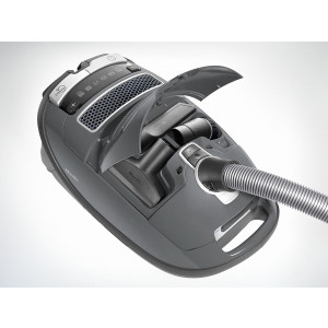Odkurzacz workowy z wysoką mocą ssania i sterowaniem nożnym dla dokładnego, wygodnego odkurzania.