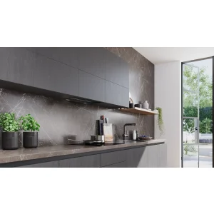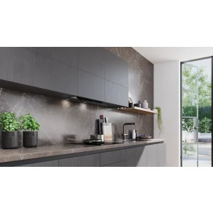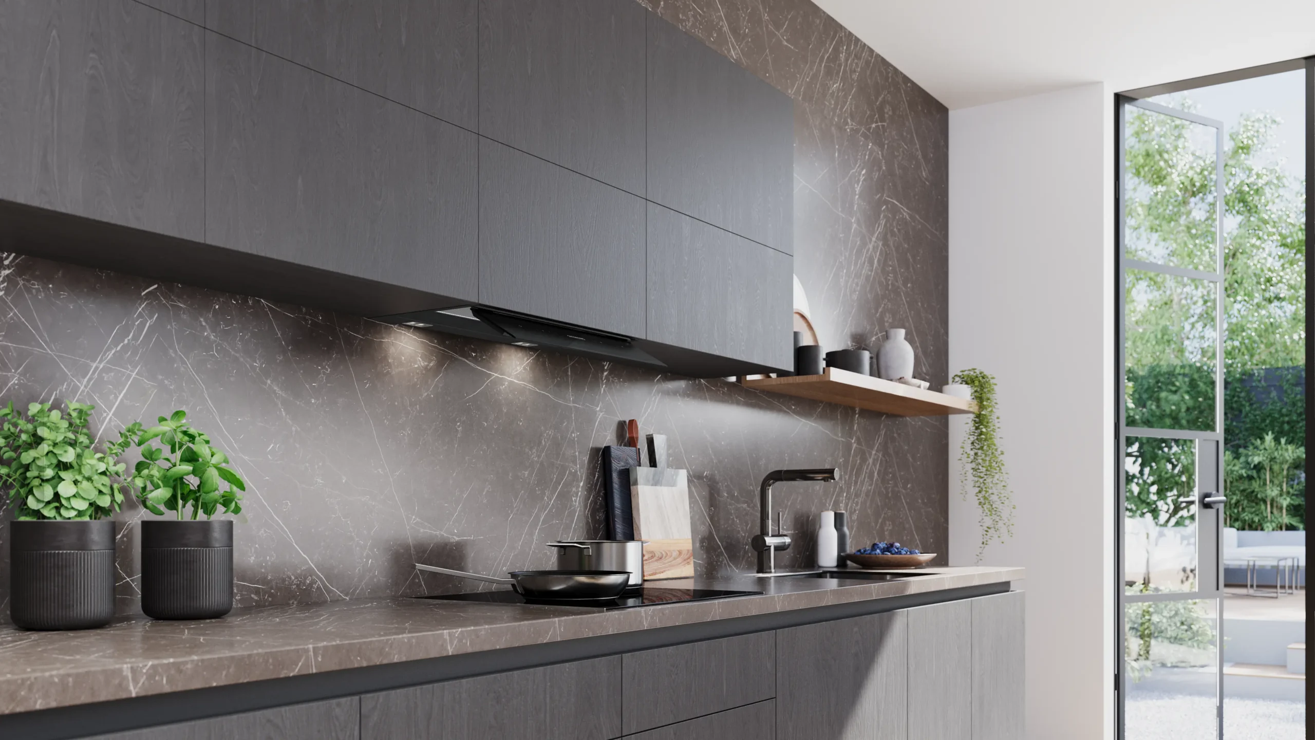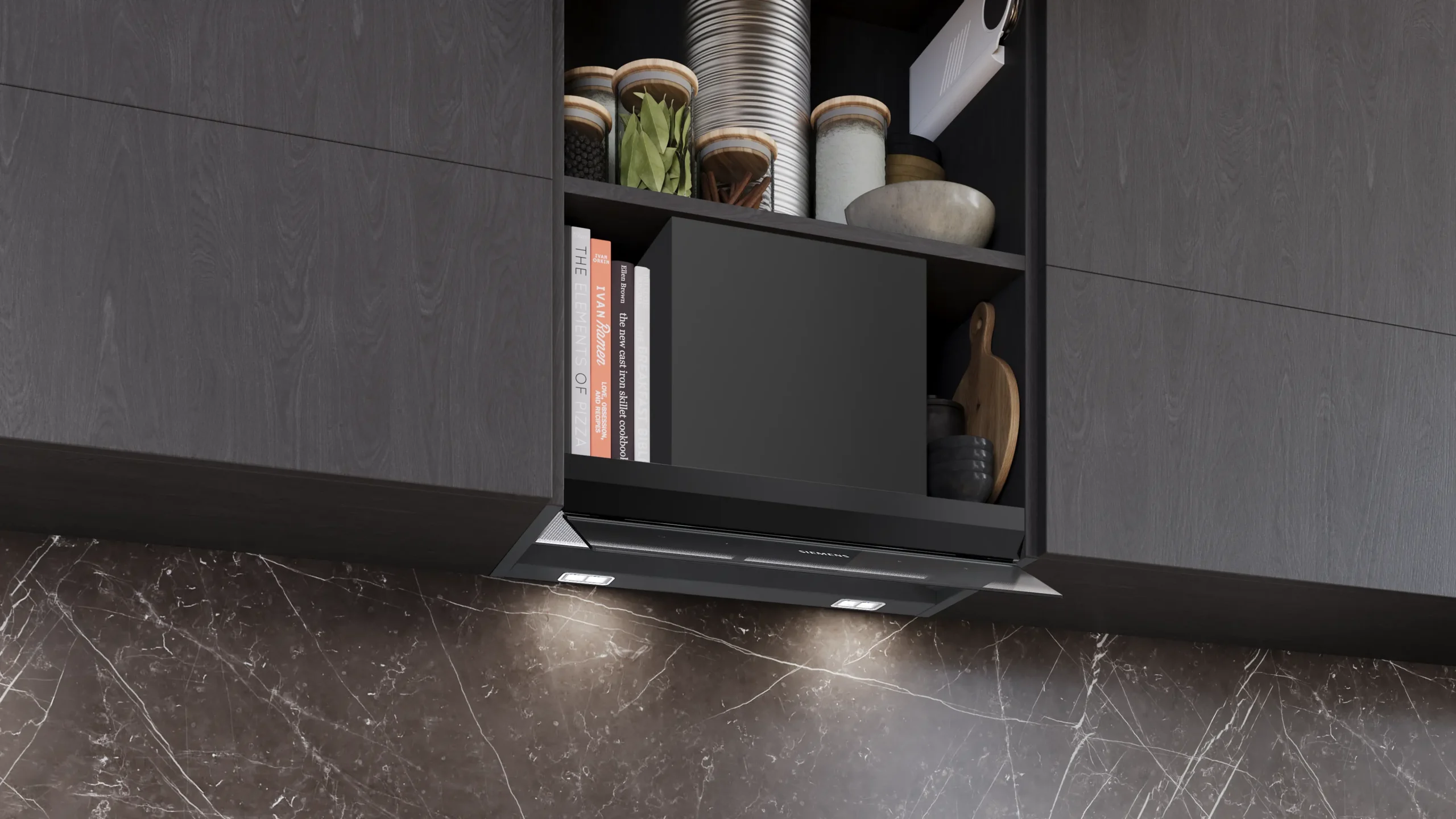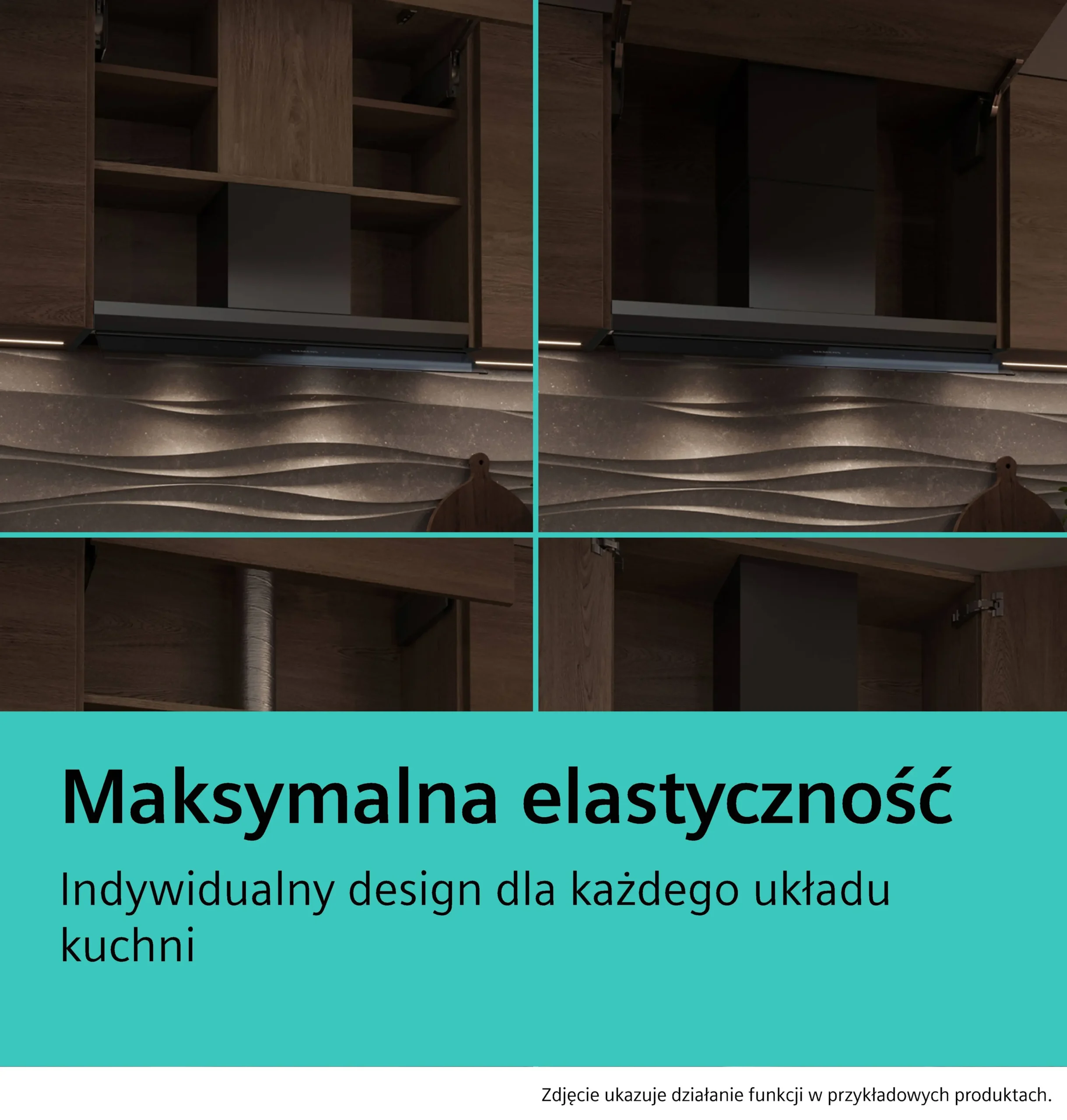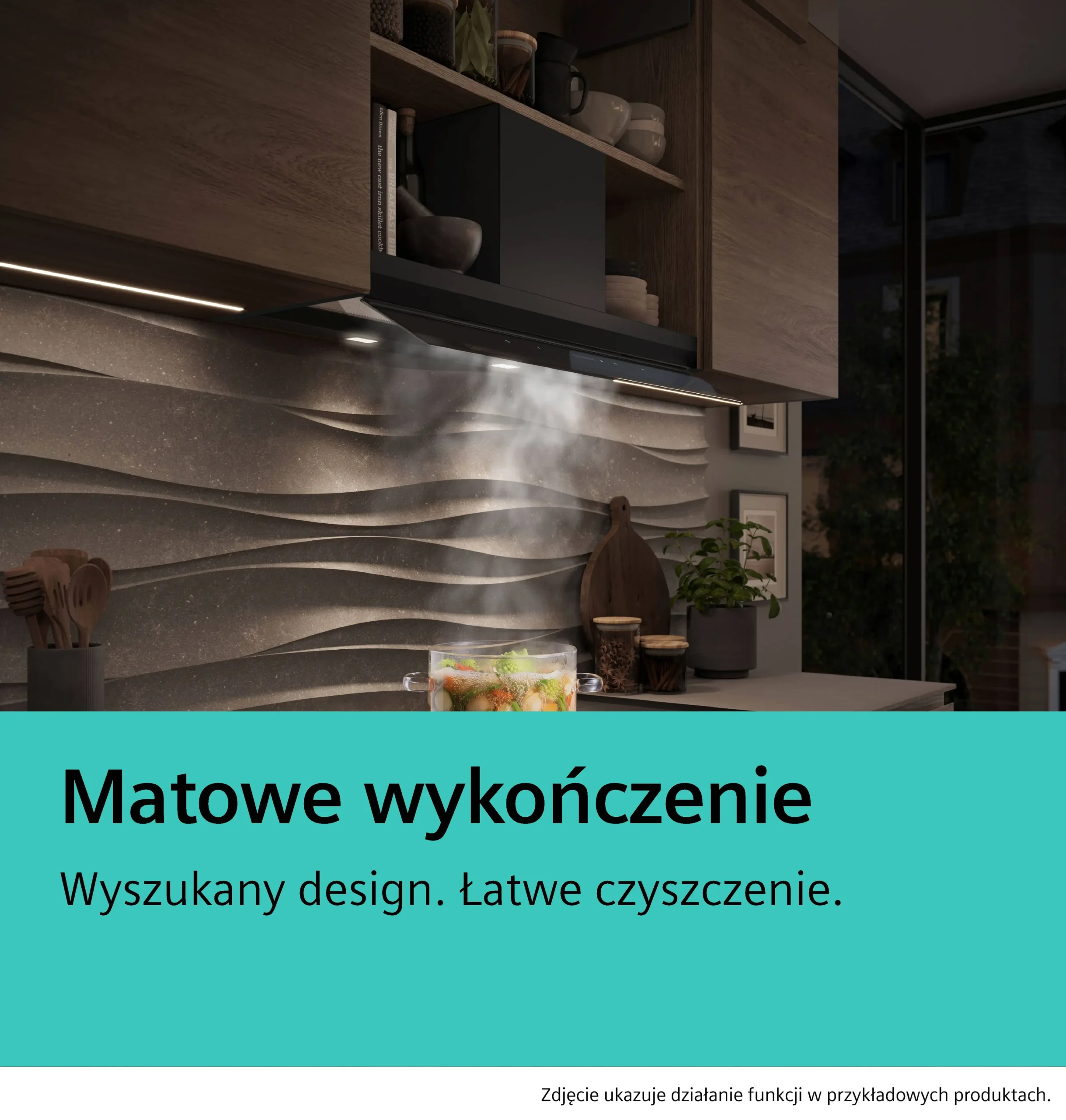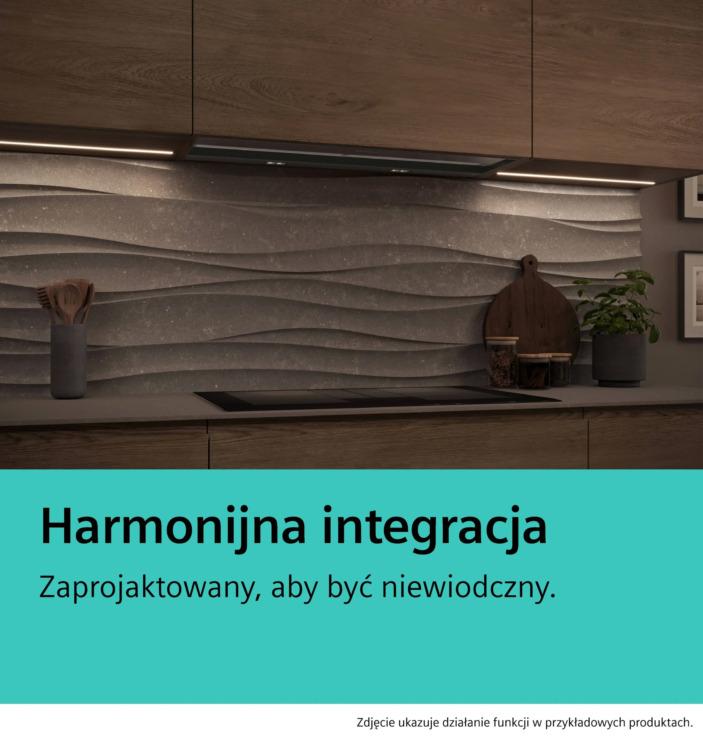 Okap do zabudowy modułowej iQ500 Integrated Design Hood LJ67BDP60 został zaprojektowany tak, aby niemal całkowicie zniknąć w kuchennej szafce, zachowując przy tym pełną gotowość do pracy. Dzięki niewielkiej głębokości 298 mm urządzenie idealnie licuje się z frontami meblowymi, co pozwala zachować spójną linię zabudowy i maksymalną ilość miejsca nad płytą grzewczą. Proces gotowania staje się bardziej intuicyjny dzięki funkcji cookConnect sterowanie okapem z poziomu płyty, która automatycznie uruchamia wyciąg i dopasowuje jego moc do intensywności smażenia czy gotowania.