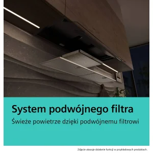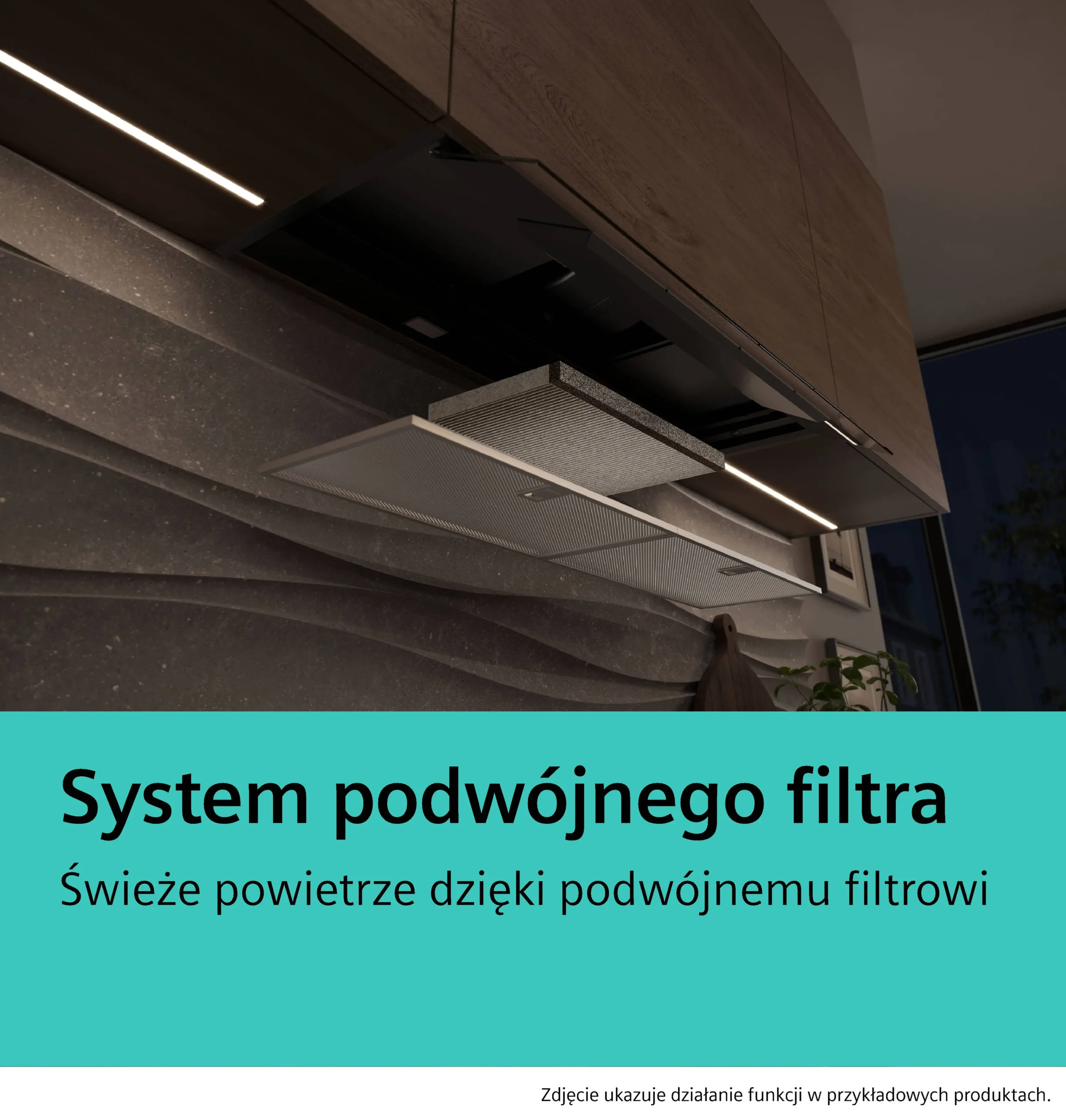 Podczas pracy cichy i energooszczędny silnik typu BLDC - iQdrive utrzymuje wysoką skuteczność usuwania oparów, generując przy tym niski poziom hałasu 57 dB przy standardowej prędkości. Taka kultura pracy sprawia, że szum urządzenia nie zakłóca rozmów domowników. Gdy sytuacja w kuchni staje się dynamiczna, maksymalny przepływ powietrza w trybie boost 699 m³/h błyskawicznie oczyszcza atmosferę, zapobiegając osadzaniu się tłuszczu na meblach. O czystość samego urządzenia dba filtr zmywalny stal nierdzewna, który można regularnie myć w zmywarce, co przekłada się na stałą drożność systemu i wysoką wydajność.