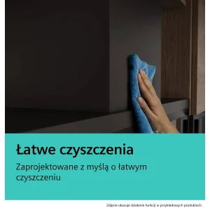 Codzienny komfort podnosi oświetlenie LED o neutralnej barwie, które dzięki funkcji softLight łagodnie rozjaśnia przestrzeń roboczą, eliminując gwałtowne rozbłyski światła. Całość uzupełnia wysoka klasa efektywności energetycznej A+, która gwarantuje, że zaawansowana technologia idzie w parze z niskimi kosztami eksploatacji, co potwierdza roczne zużycie energii 27.2 kWh/rok.