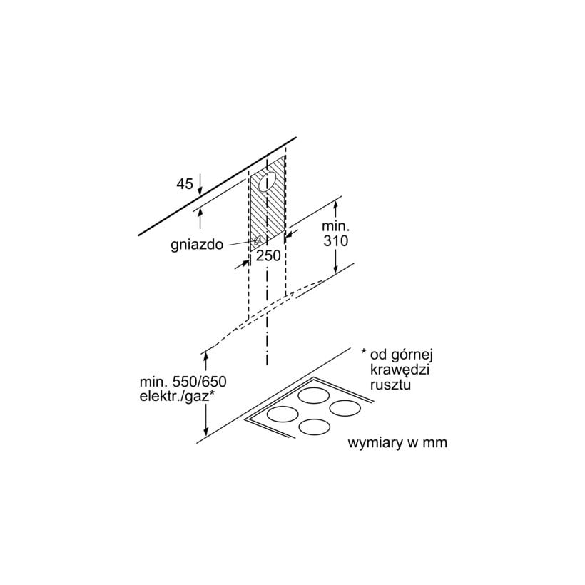 686 x 600 x 488 mm – montaż na kominie zewnętrznym 815-1145 x 600 x 488 mm – montaż na kominie wewnętrznym - Wymiary urządzenia w trybie zamkniętym (HxBxT):