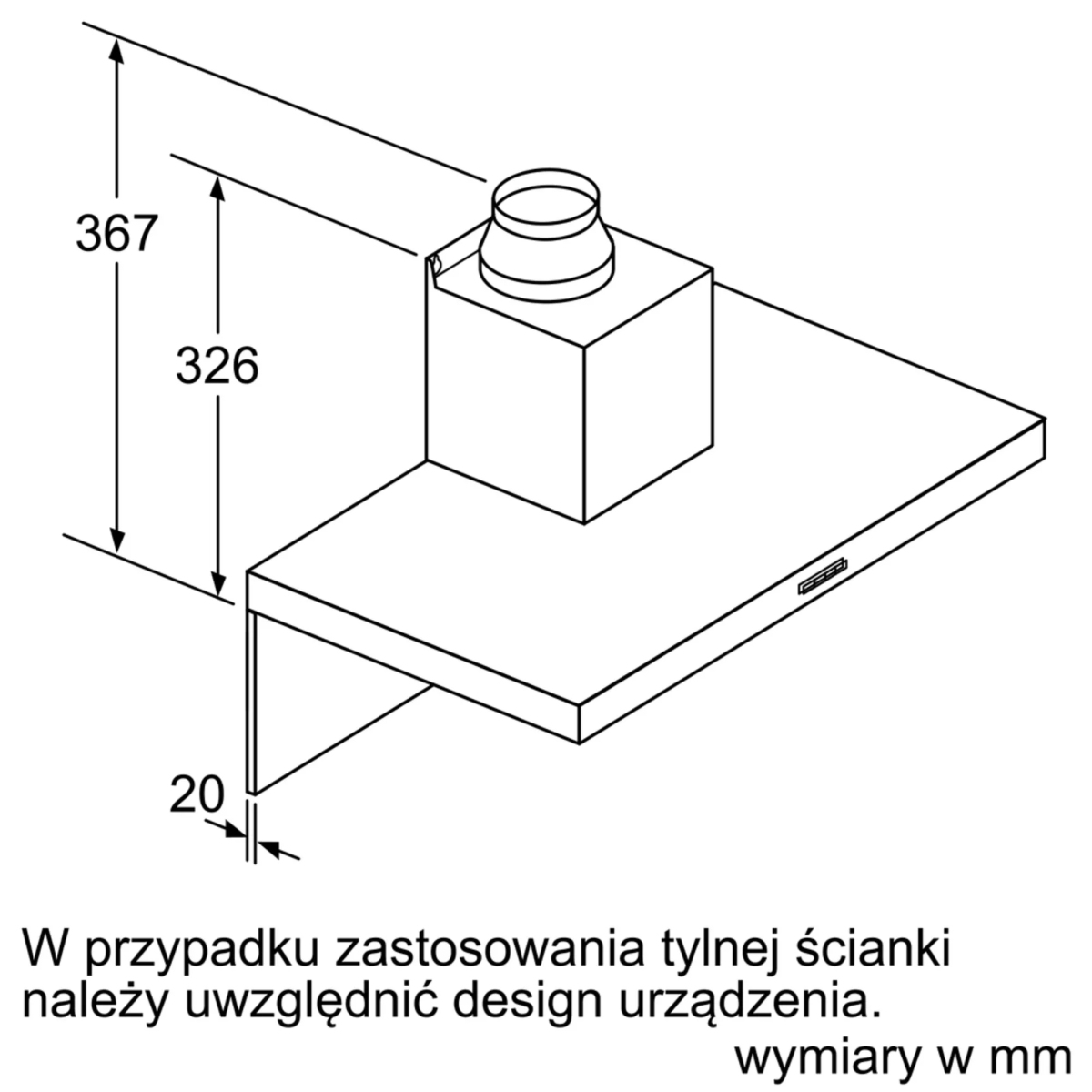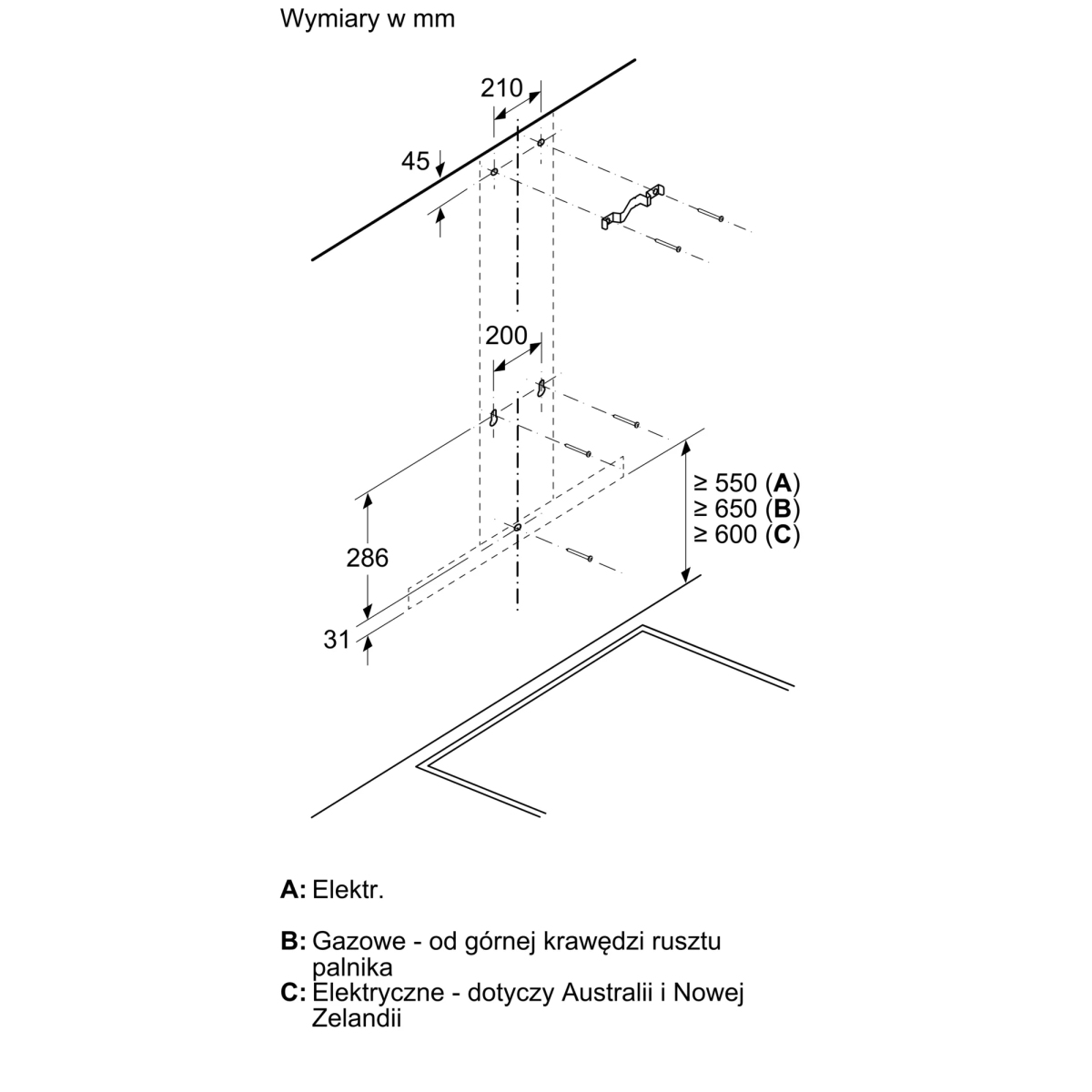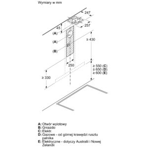 | Minimalna odległość od płyty gazowej | 650 mm |