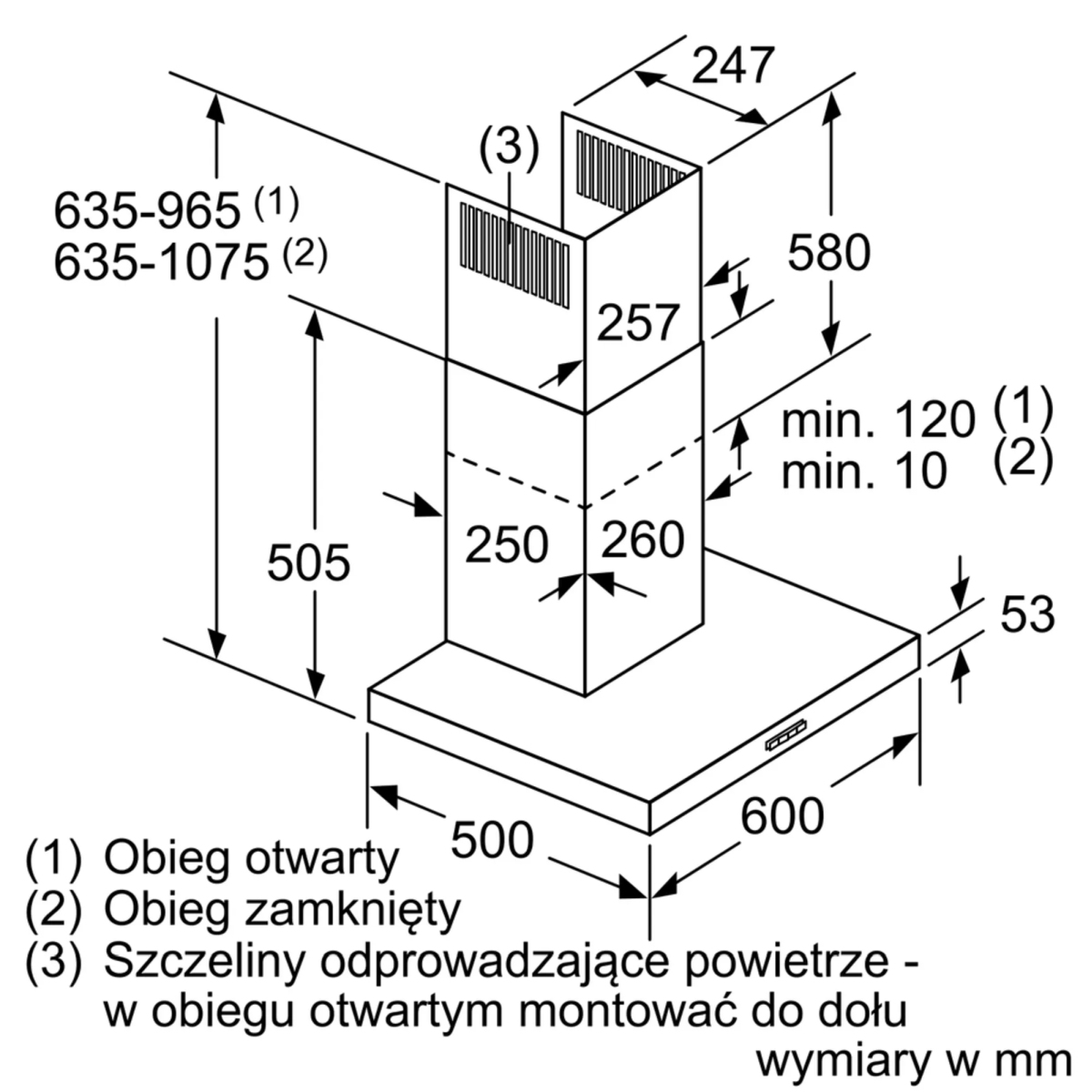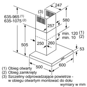 | Wysokość maksymalna urządzenia obieg zamknięty | 1075 mm |