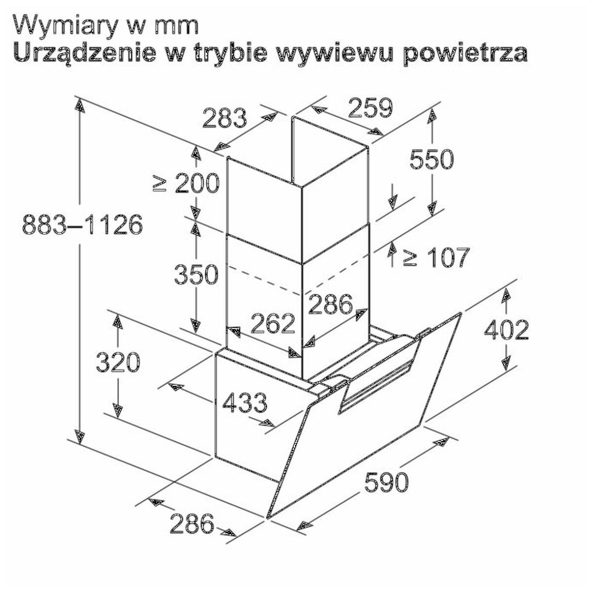 | Wymiary obieg otwarty (WxSxG) | 883-1126 x 590 x 433 mm |